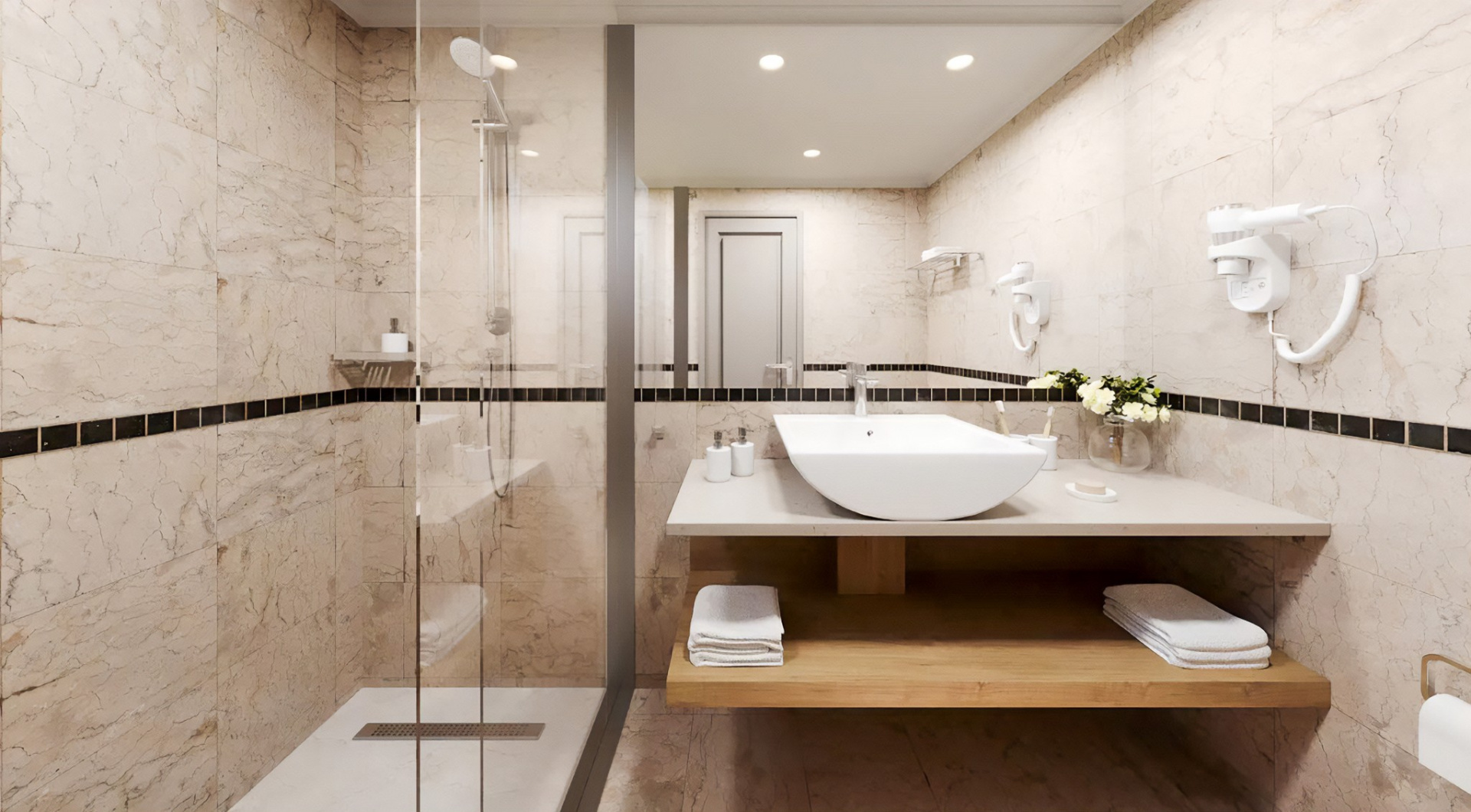 - fürdőszoba (fürdőkád vagy zuhanyozó, hajszárító, papucs és fürdőköpeny, WC)