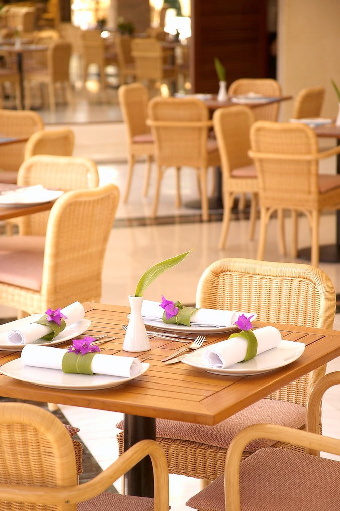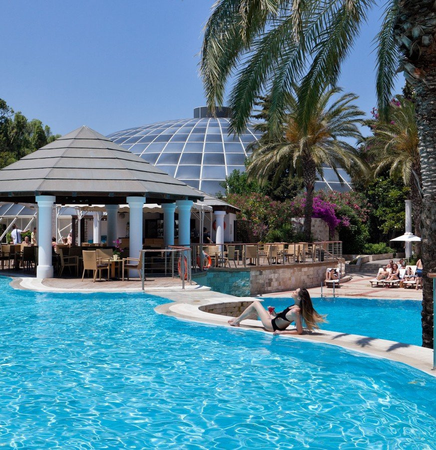 Az ultra all inclusive program tartalmazza: reggeli (7:00-10:00), ebéd (12:30-14:30) és vacsora (19:00-21:30) bőséges büfé formájában - Ambrosia étterem. Napközbeni snackek a Gallery Caféban (11:00 - 00:00) - gyros, pizza, hot dog, chips, szendvicsek, saláták, gyümölcsök stb. Prémium alkoholos italok; alkoholmentes és alkoholos, helyben készített italok (10:00-00:00 - Terrace Bar - csak italok; 19:00-00:00 Dome Club Bar) a szálloda által kijelölt helyeken és időpontokban. A szálloda az éttermekben formális öltözéket igényel (uraknak hosszú nadrág). Májustól októberig Family Club büfé étterem: meleg és hideg snack ételek, palacsinta és más desszertek.