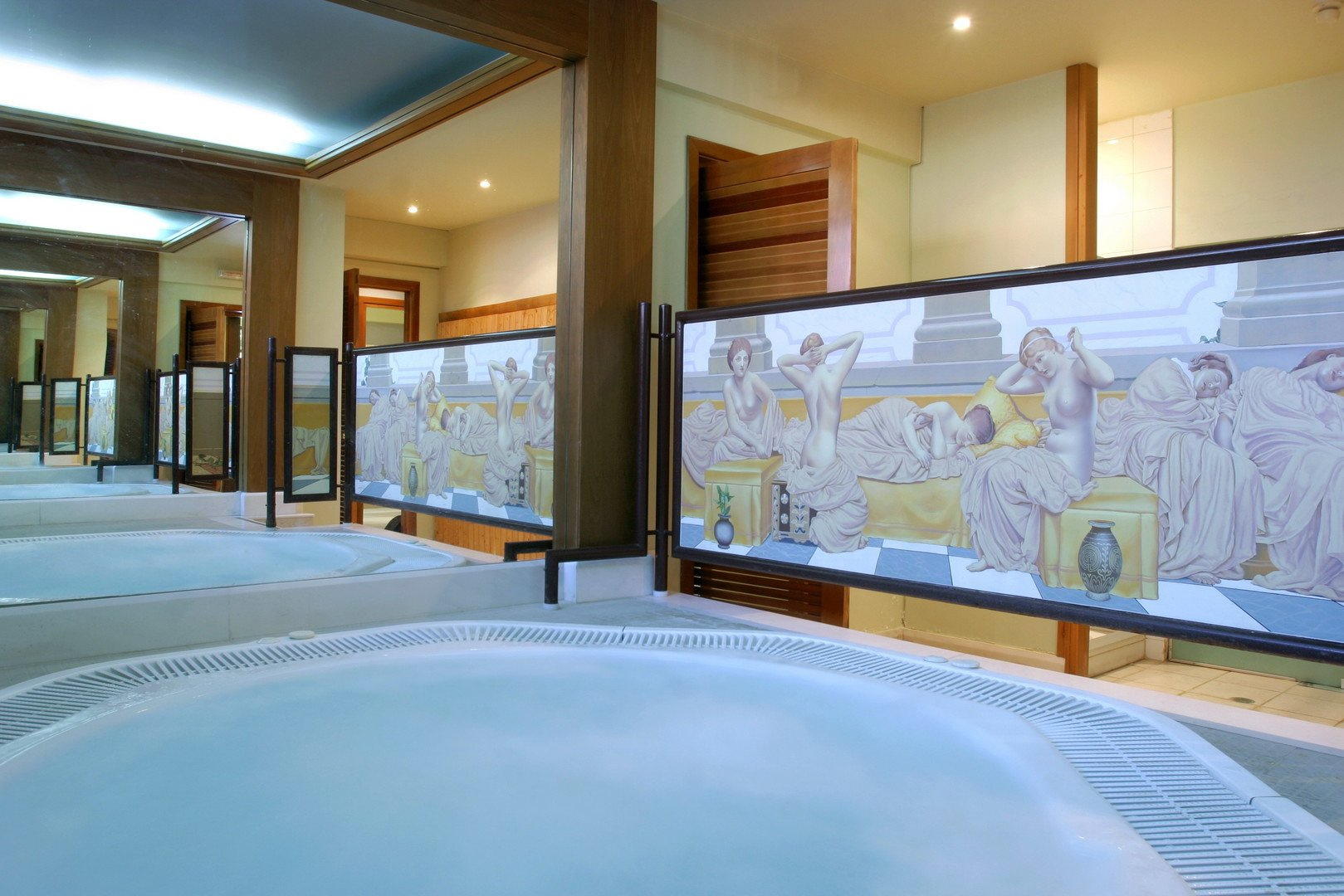 Előcsarnok, 24 órás recepció, pénzváltó, liftek, főétterem, elegáns à la carte éttermek (3 étkezés/tartózkodás az árban, előzetes foglalás szükséges)), lobby bár (10:00 - 24:00), medence melletti snack bár, Gallery Café (11:00 - 00: 00:00), társalgó TV-vel, konferenciaközpont, ingyenes WiFi; napozóterasz, 2 úszómedence, gyermekmedence, gyermekeknek vízicsúszda, fedett medence; napágyak és napernyők a medencénél ingyenesen, törölközők visszatérítendő letét ellenében (kb. 10 EUR). Külön fizetendő: internetsarok (kb. 5 EUR/óra), autóbérlés, orvosi szolgáltatások (ügyelet).