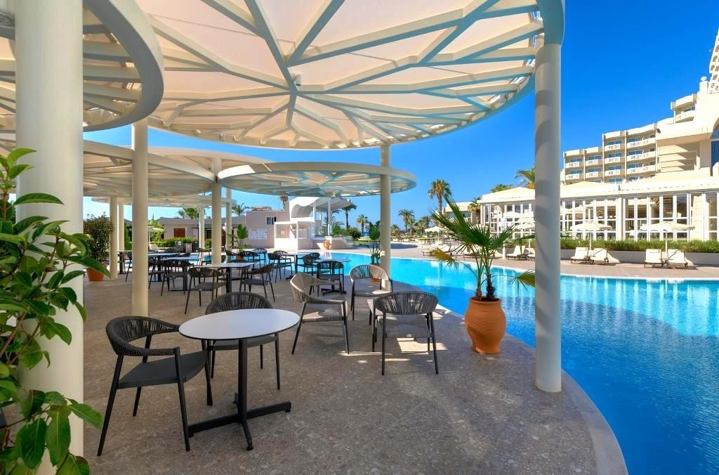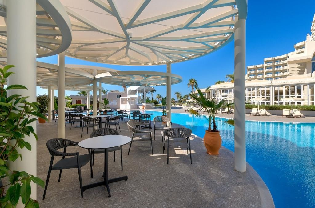 A többszörösen díjazott luxusszálloda 6 szintes főépületből és 5 szomszédos melléképületből áll, amelyek közül az egyik saját medencékkel rendelkezik. Közvetlenül a tengerparton található, mindössze 15 percre Rodosz városától. A hotel híres a görög vendégszeretet iránti őszinte, időtlen szenvedélyéről, amely valódi és autentikus élményt kínál vendégeinek. Minden korosztálynak ajánljuk.