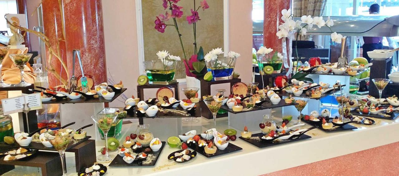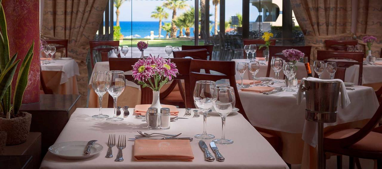 Félpanziós és teljes panziós ellátással foglalható. Az étkezések büférendszerben történnek és italok nélkül értendőek. A szálloda főéttermén kívül egy a’la carte étterem és három bár szolgálja a vendégek kényelmét.