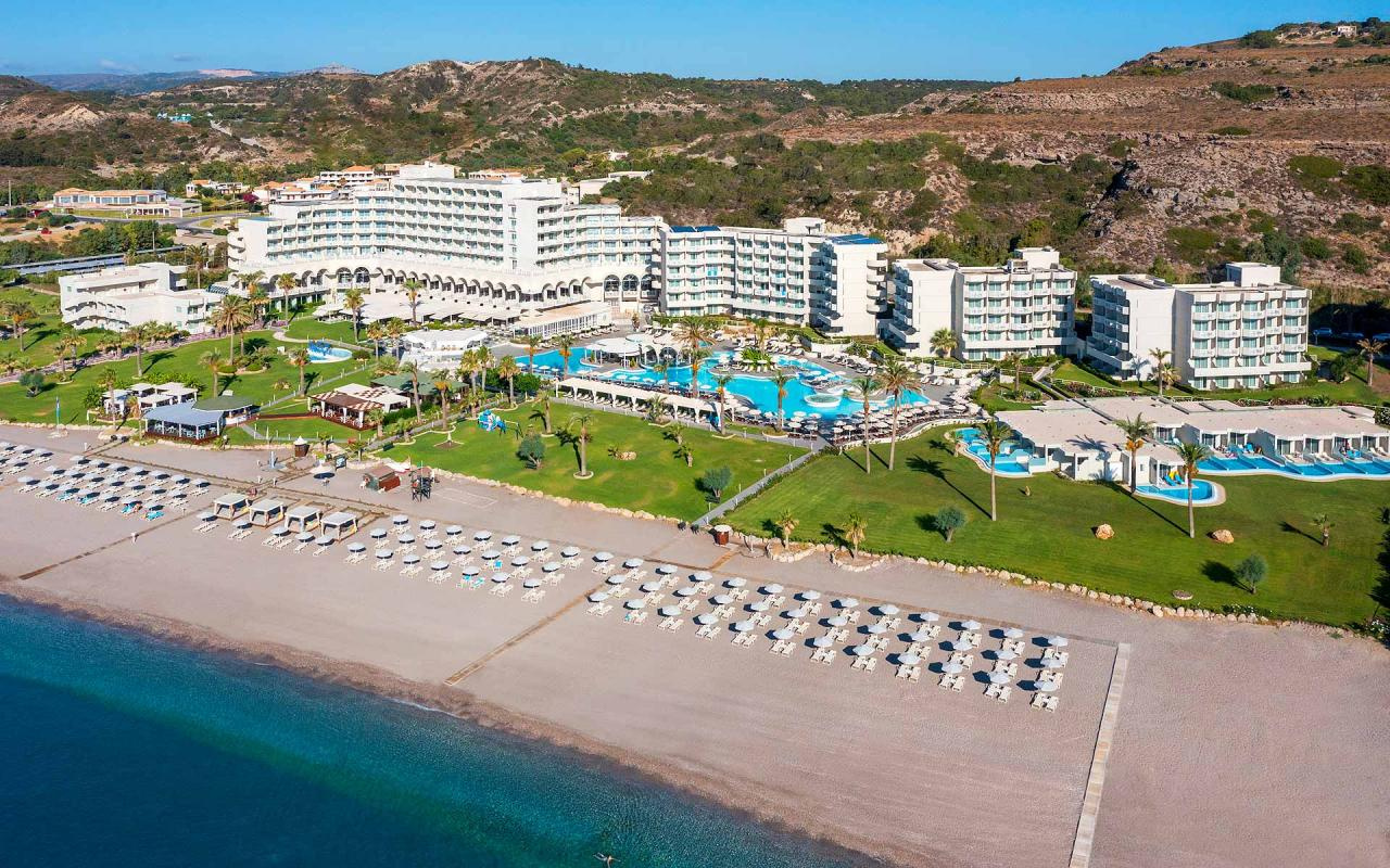 2-en, közvetlenül a Kék Zászló díjjal kitüntetett, homokos-kavicsos tengerparton fekszik. A repülőtértől kb. 15 km-re, Rodosz történelmi városától kb. 8 km-re helyezkedik el, míg Falirakitól kb. 4 km-re fekszik. Afandou üdülőben, kb. 8 km-re egy 18 lyukú golfpálya is található.