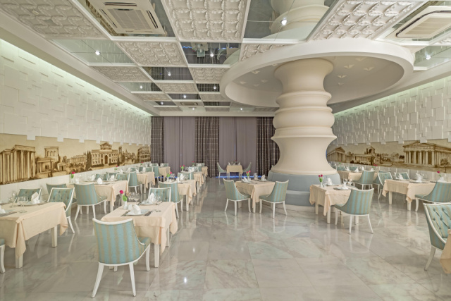 A szépen kialakított szálloda Larában található, közvetlenül a saját homokos/kavicsos strandján. A családbarát létesítményben aquaparkkal, több étteremmel és változatos animációs programokkal várják a vendégeket. Elsősorban családok számára ajánljuk.