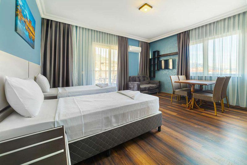 SZOBÁK: 36 szoba • erkély • légkondicionálás térítés ellenében • hajszárító • telefon • TV • konyhasarok • hűtőszekrény • vízforraló • széf térítés ellenében • wifi