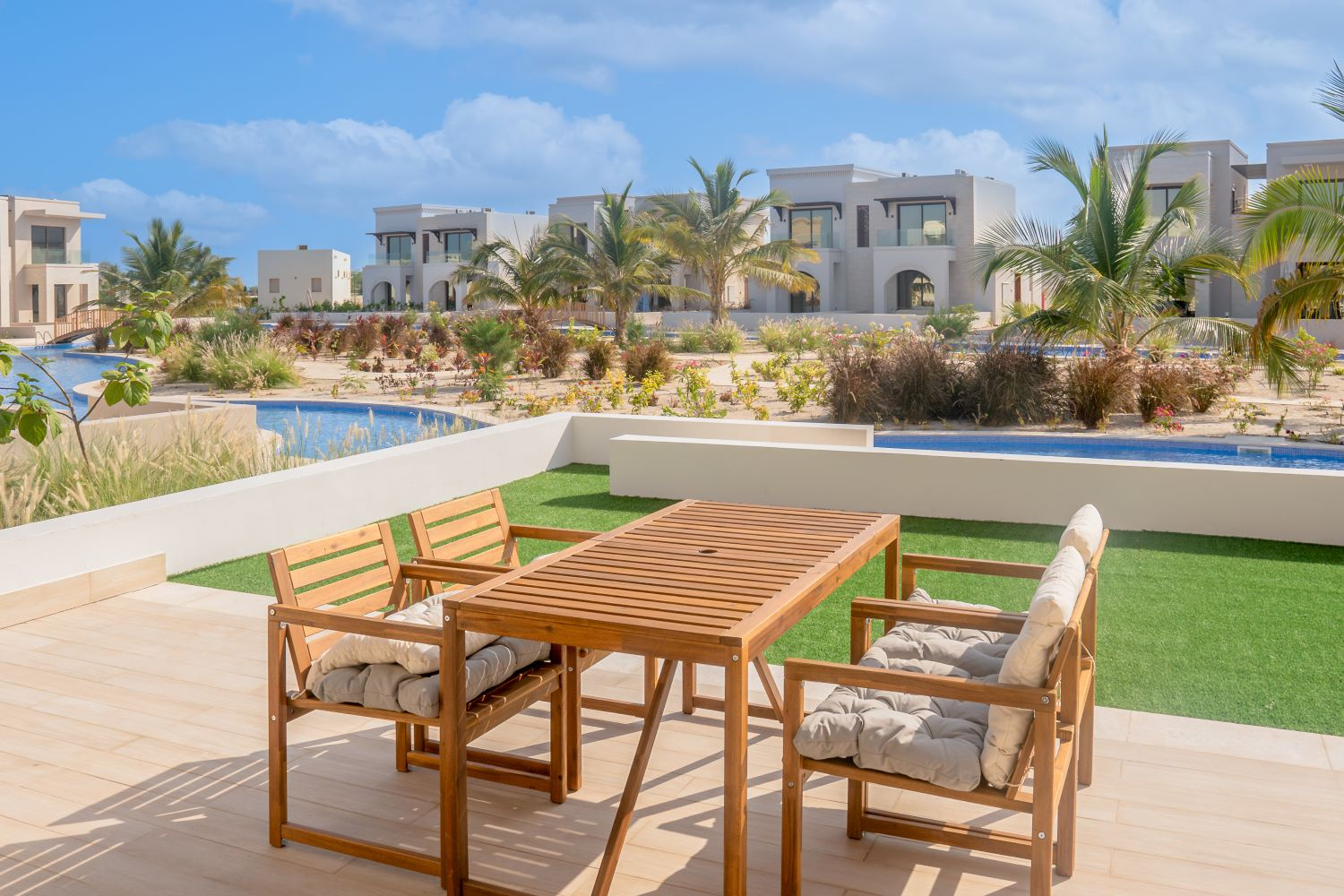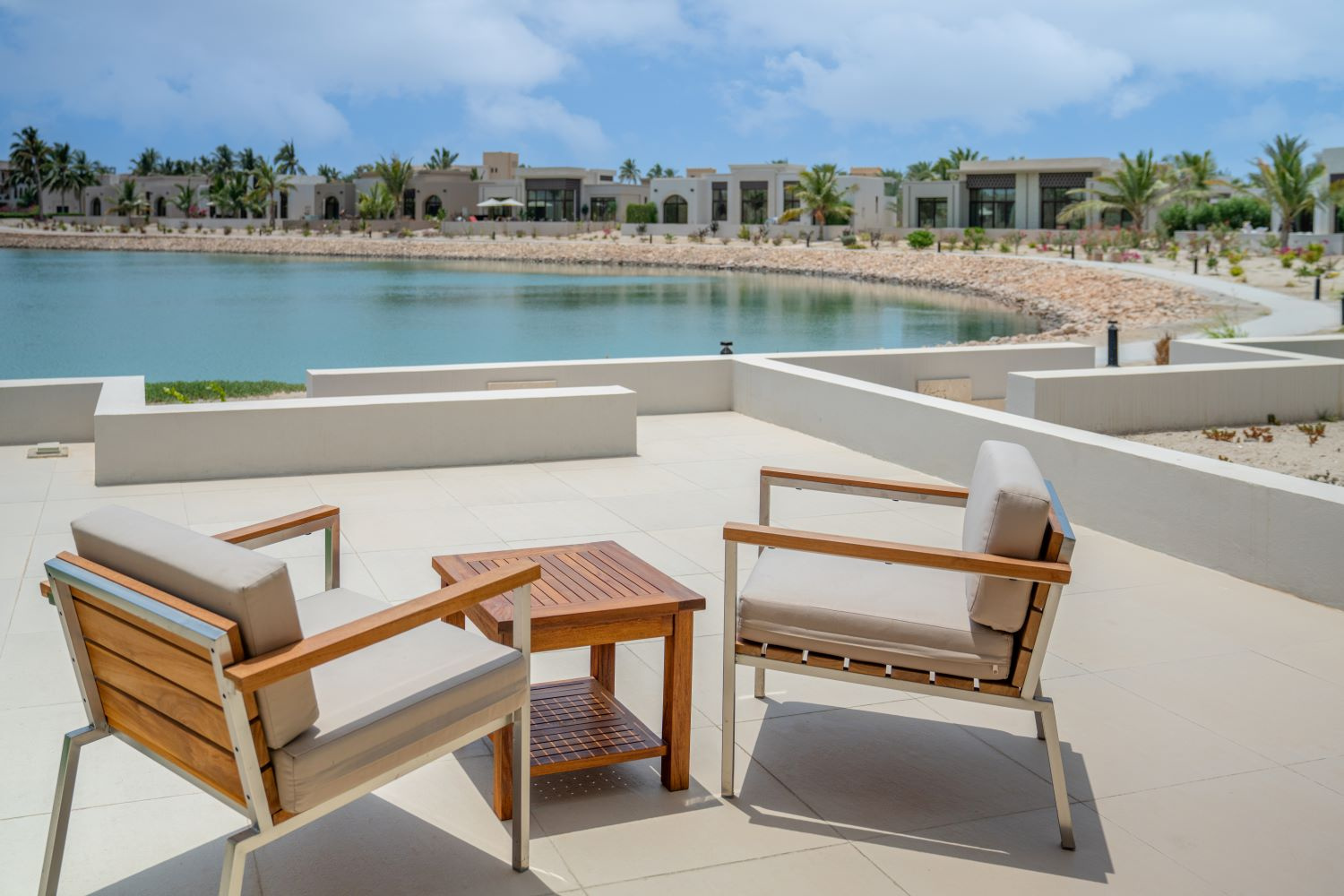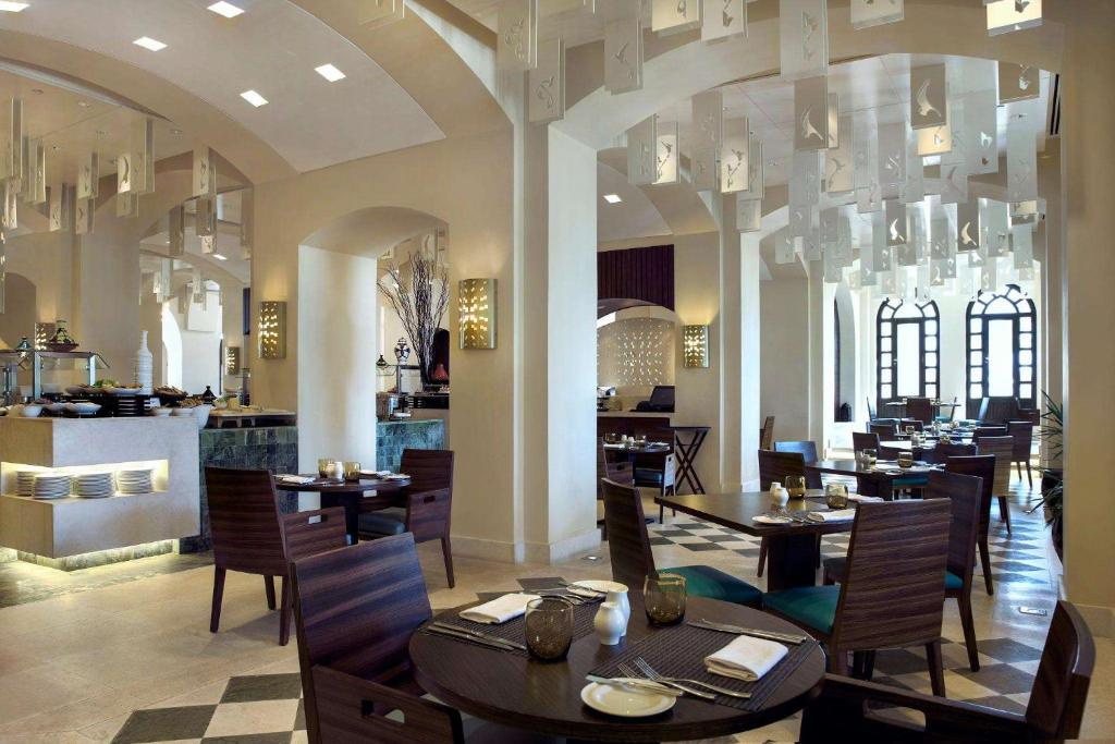 A fényűző 422 szobás luxusszálloda a repülőtértől 35 kilométerre, a festői Indiai Óceán partján helyezkedik el. A többhektáros területen fekvő modern szállodakomplexumot több épületből egy mesterséges lagúnarendszerben alakították ki megőrizve a hagyományos arab építészetet és sítust.