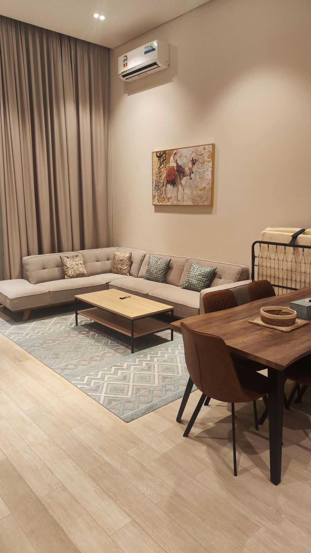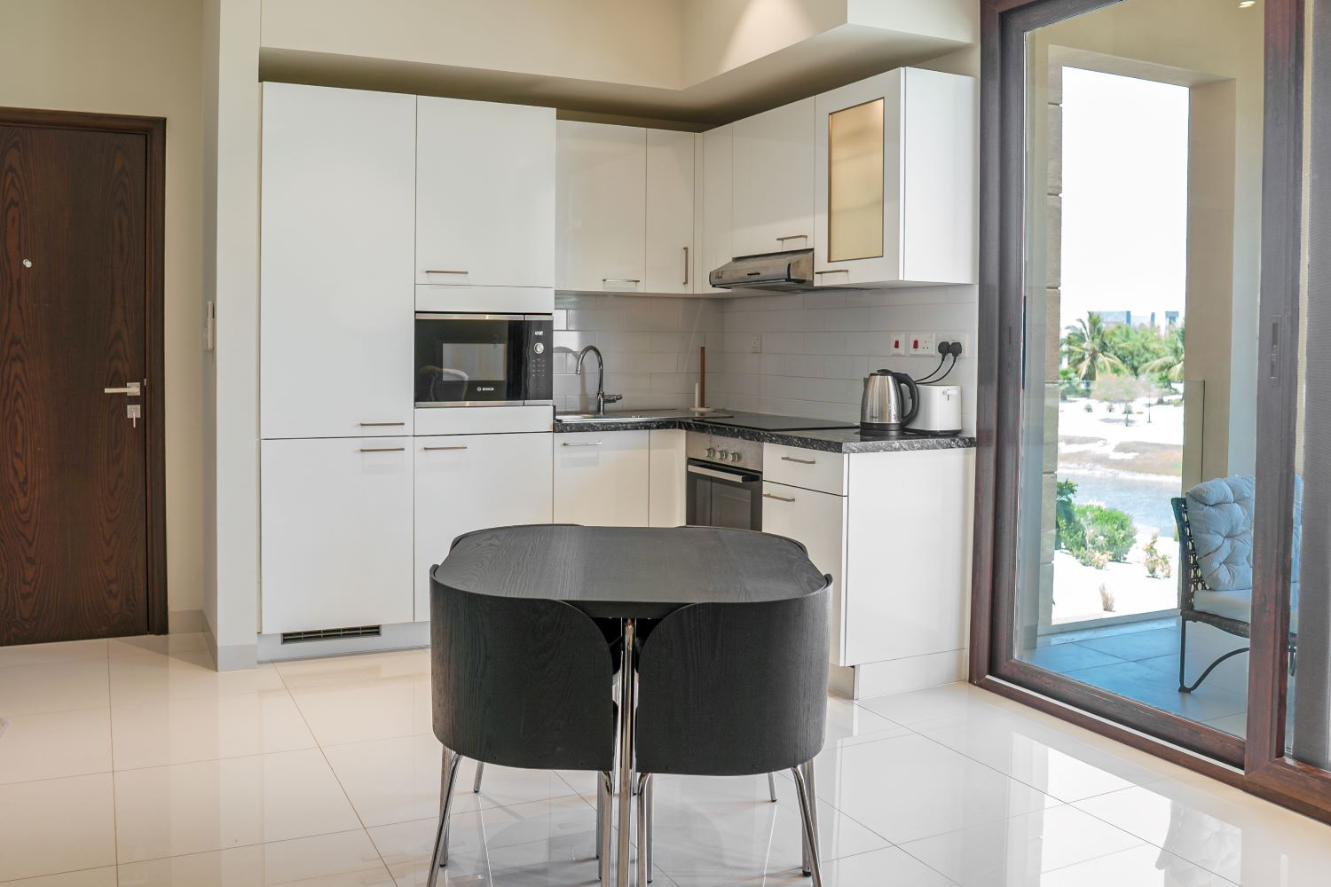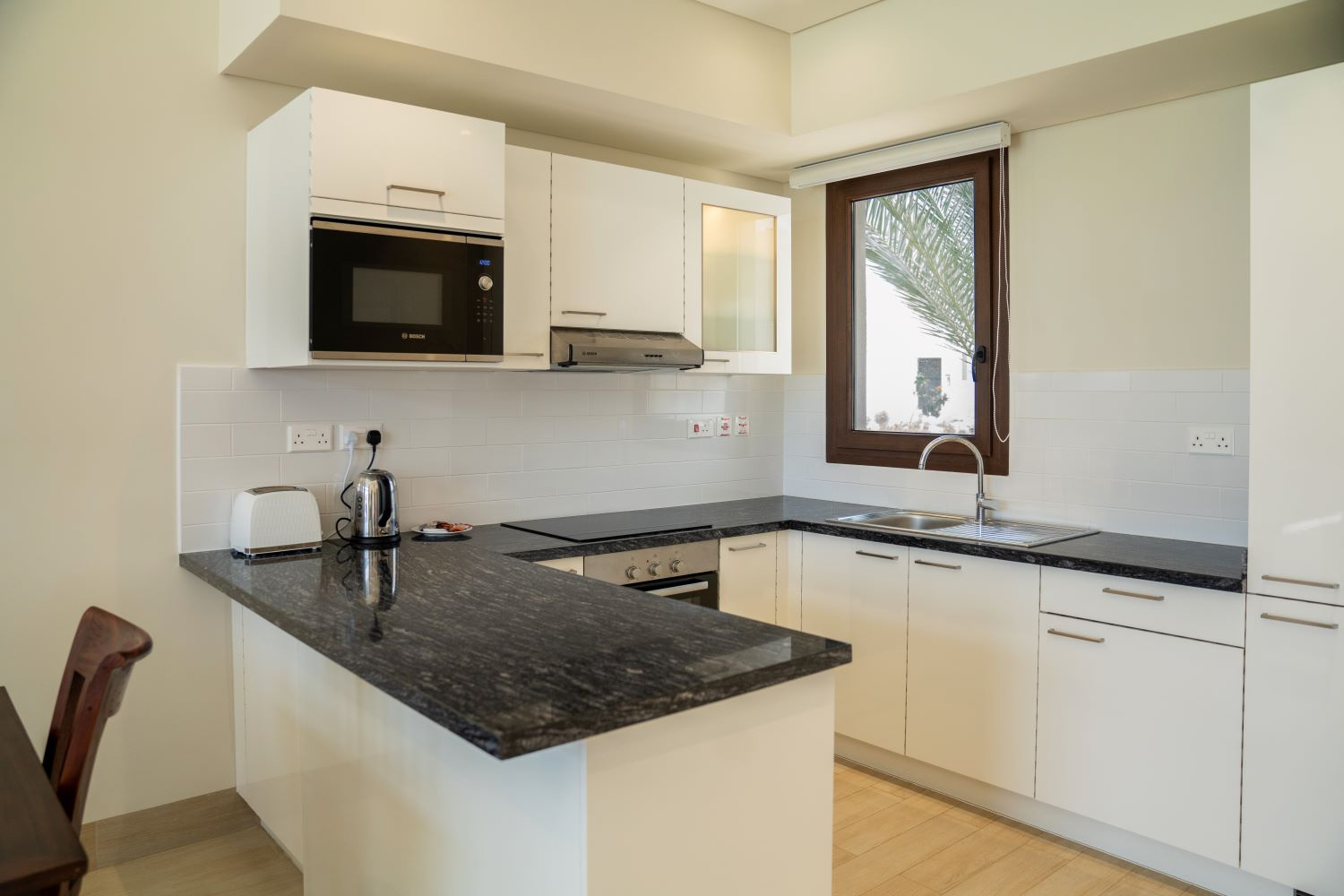 A fényűző 422 szobás luxusszálloda a repülőtértől 35 kilométerre, a festői Indiai Óceán partján helyezkedik el. A többhektáros területen fekvő modern szállodakomplexumot több épületből egy mesterséges lagúnarendszerben alakították ki megőrizve a hagyományos arab építészetet és sítust.