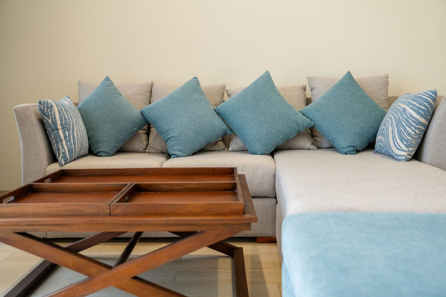DELUXE a tengerre néző szobák (pótágyazható) elegánsan, modern bútorokkal berendezettek és 43 nm alapterületűek. Felszereltségük megegyeznek a CLASSIC szobáéval.