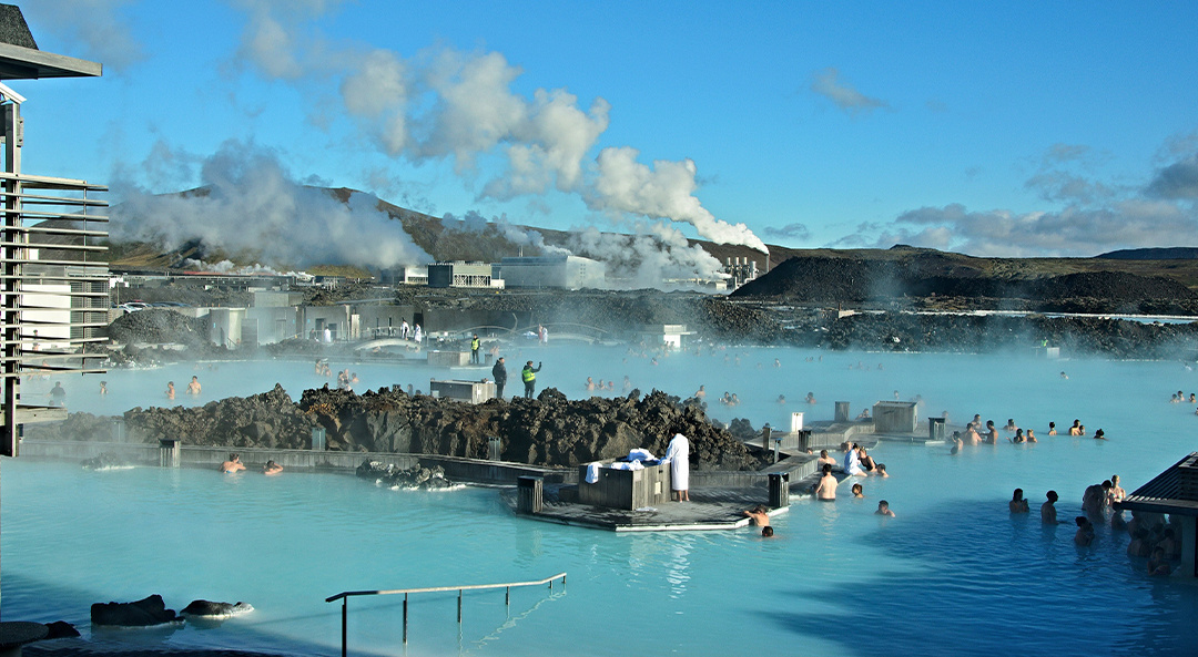 - Kék Lagúna vize forró gőzzel együtt gyógyít