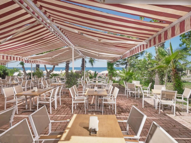 SZOLGÁLTATÁSOK: kültéri medencék napernyőkkel és nyugágyakkal • beltéri medence • csúszdák • főétterem • bárok (lobby, medence, strand…) • nappali és esti animáció • esti show • élőzene • diszkó • fitneszterem • boccia • strandröplabda • aerobik • darts • asztalitenisz • szauna • törökfürdő • ingyenes wifi a lobbyban és a medencénél • térítés ellenében: wellnessközpont • törökfürdős kezelések • masszázs • kozmetikai kezelések • fodrászat • üzletek • orvosi ügyelet • mosoda • autóbérlés • vízi sportok a strandon • konferenciaterem