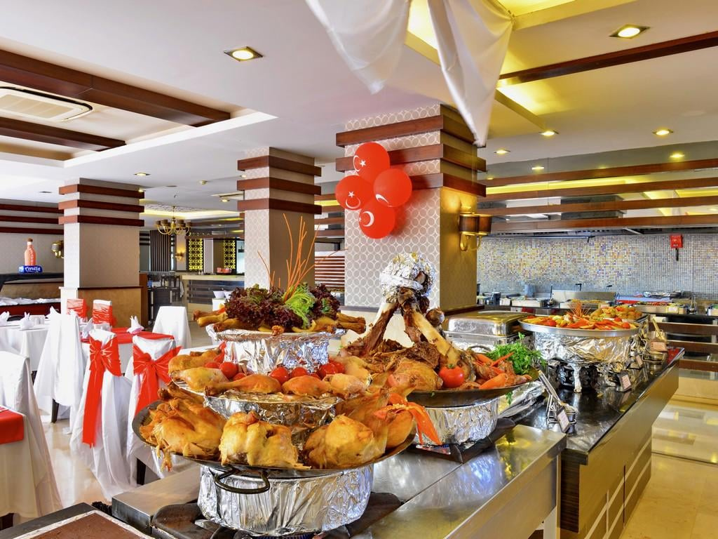 ELLÁTÁS: all inclusive • svédasztalos reggeli, ebéd és vacsora • délutáni és éjszakai snackek • kávé, tea, sütemények • fagylalt • a’la carte éttermek (török és olasz, 1 alkalom tartózkodásonként, előzetes foglalással) • helyi alkoholos és alkoholmentes italok • minibár • térítés ellenében: import és prémium alkoholos és alkoholmentes italok, palackozott italok, friss gyümölcslevek, török kávé, italok a diszkóban, éjféli italok