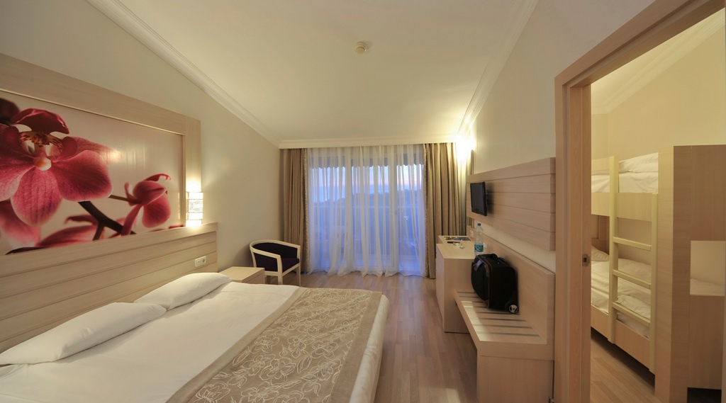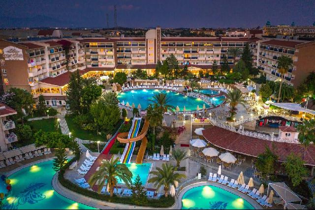 Fekvése: Az 1999-ben épült, és 2010/2011-ben teljesen felújított szálloda az antalyai repülőtértől 64 km-re, Side központjától 4 km-re terül el, kb. 350 méterre Kumköy aranyhomokos tengerpartjától, ahová a szálloda ingyenes shuttle járatot biztosít. Side óvárosába dolmussal vagy taxival könnyedén bejuthatunk, így a hotel remek kiindulópont lehet a város és a környék felfedezéséhez, nappali és éjszakai szórakozáshoz. A kiváló ár-érték arányú szálloda ideális választás, Ön akár párjával, akár gyermekeivel érkezzen. Szolgáltatások: 2 medence napernyőkkel és napozóágyakkal, gyermekmedence, 2 csúszda, belső medence gyermekrésszel, 3 étterem, 5 bár, nappali és esti animációs programok, alkalmanként török est, miniklub (4-12 évig), játszótér, minidiszkó, gyermekprogramok, török fürdő, szauna, fitneszterem, asztalitenisz, boccia, aerobik, vízi torna, strandröplabda, WIFI a lobbyban. A strandon a napernyők, napozóágyak és a strandtörölközők ingyenesen, a matracok térítés ellenében vehetők igénybe. Térítés ellenében: Spa szolgáltatások, törökfürdő kezelései, fodrászat, mosoda, üzletek, orvosi ellátás. Elhelyezés: Az összesen 404, igényesen berendezett szoba mindegyike légkondicionálóval, telefonnal, hajszárítóval, minibárral, műholdas LCD tévével, bérelhető széffel és erkéllyel rendelkezik. A standard szobák 20 nm-esek. A családi szobák 40 nm-esek és két, ajtóval elválasztott hálószobával rendelkeznek, felszereltségük megegyezik a standard szobákéval. Ellátás: All inclusive: reggeli, ebéd és vacsora büférendszerben, délutáni snackek, gözleme és fagylalt bizonyos időpontokban, éjféli snack (23:00-23:30 között), kávé/tea/sütemény, 2 a’la carte étterem (török és olasz; a tartózkodás ideje alatt egy alkalommal, előzetes foglalással), helyi alkoholos és alkoholmentes italok (10:00-23:00 között), naponta víz a minibárból. Térítés ellenében: import, palackozott és prémiumitalok, borok és pezsgők, frissen facsart gyümölcslevek, fogyasztás a vitaminbárban és a diszkóban.Egyéb: