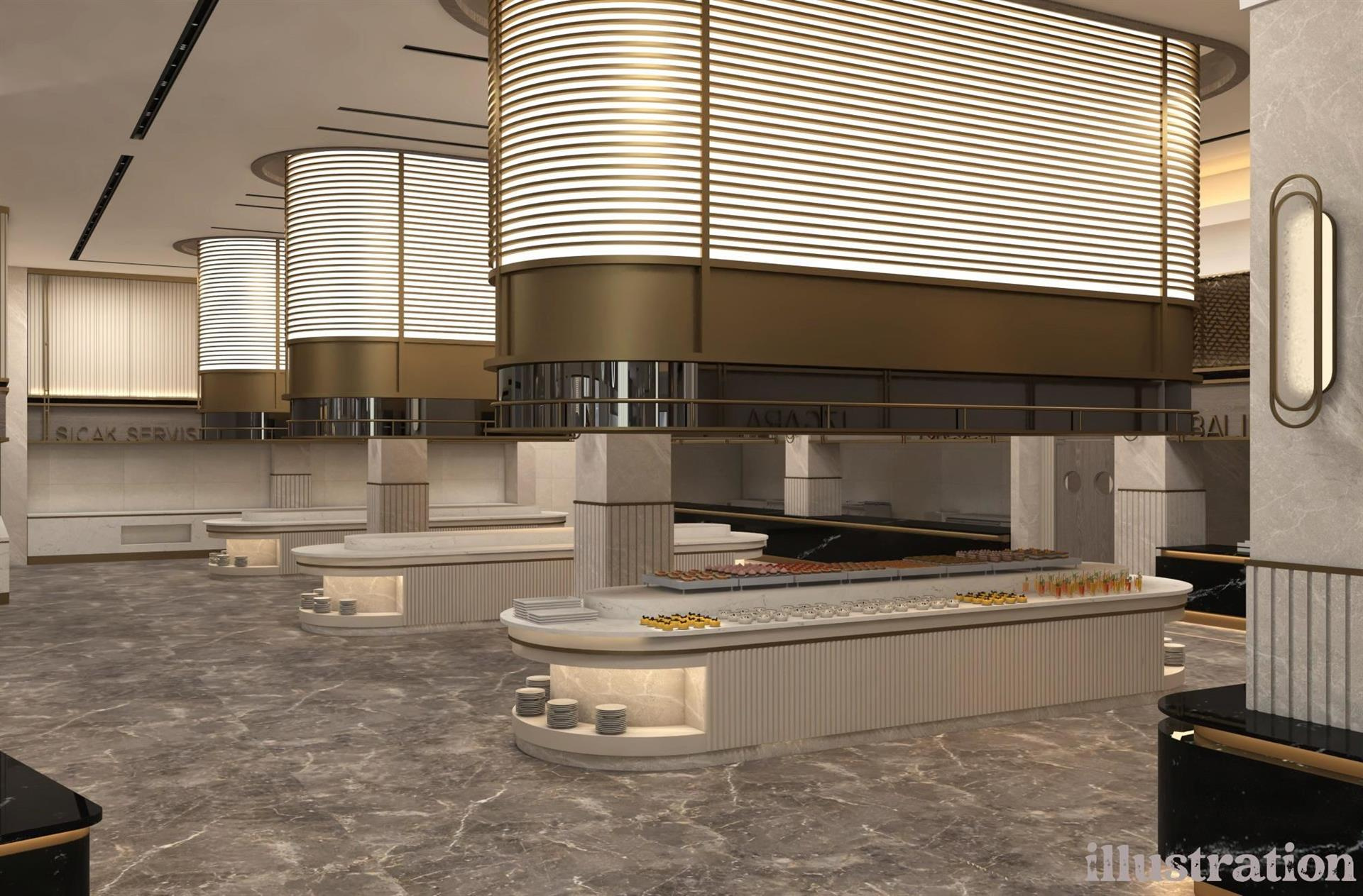 A koncepció tratalmazza reggeli, ebéd, vacsora, snack, fagylalt, sütemények, kávé megadott időpontokban. Továbbá helyi alkoholos és alkoholmentes italok valamint néhány importált ital is elérhető.