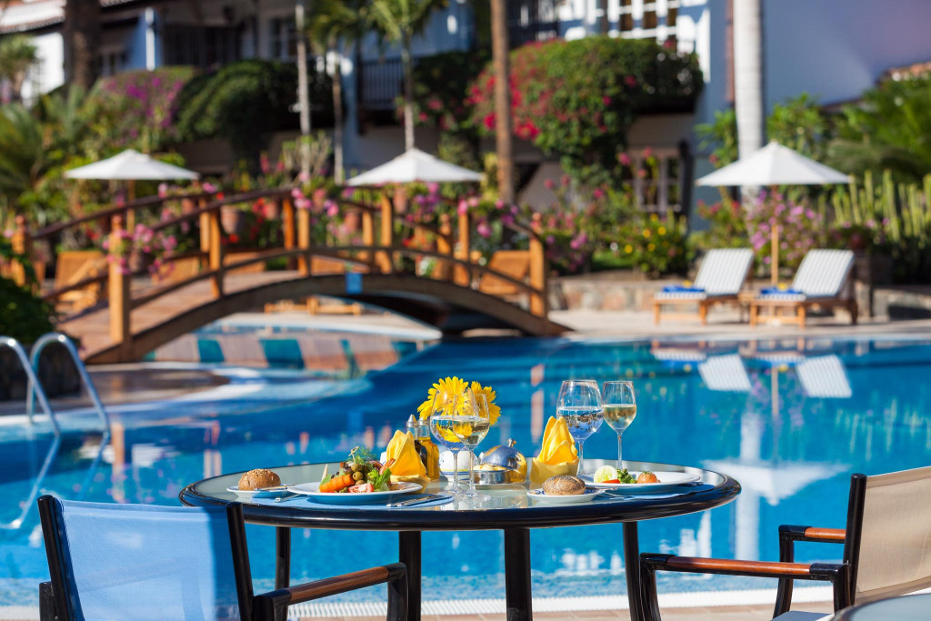 • Étterem A többszörösen díjnyertes étterem kanári kulináris specialitások és gondosan válogatott borok széles választékát kínálja. Első osztályú séfjeink minden nap csak a legfrissebb alapanyagokból készítenek kivételes à la carte menüt vendégeink számára. Éttermünk a Gran Canaria-szigeteki borok széles választékát kínálja Dress code: Laza elegáns. Este az uraknak hosszú nadrágot kell viselniük. Vacsora közben rövidnadrág nem megengedett. • Medence bár Házi tapasokat és snackeket kínál. Ebédidőben mindig friss, szezonális alapanyagokból készült tapas, harapnivalók és á la carte ételek széles választékát kóstolhatja meg. • Zongora bár Egy vacsora előtti aperitif ebben az elegáns és kényelmes bárban, amely panorámás teraszunkon is elfogyasztható. A zongora bárban élőzene kíséri a vendégek estéjét. • Cross-dining Esencia és La Bodega éttermekben. Cross dining kínálatunkkal lehetőséget biztosítunk testvérszállodánk éttermeinek meglátogatására. Vacsorázzon az 5 csillagos Seaside Palm Beach szállodánk fő éttermében, vagy az Esencia és La Bodega a la carte éttermekben. • A séfről Michellin-sztárszakács, Wolfgang Grobauer. A vendégek 2011 óta kóstolhatják meg a finom, ínyenc ételeket, amelyeket Wolfgang Grobauer séfünk készített nekik.