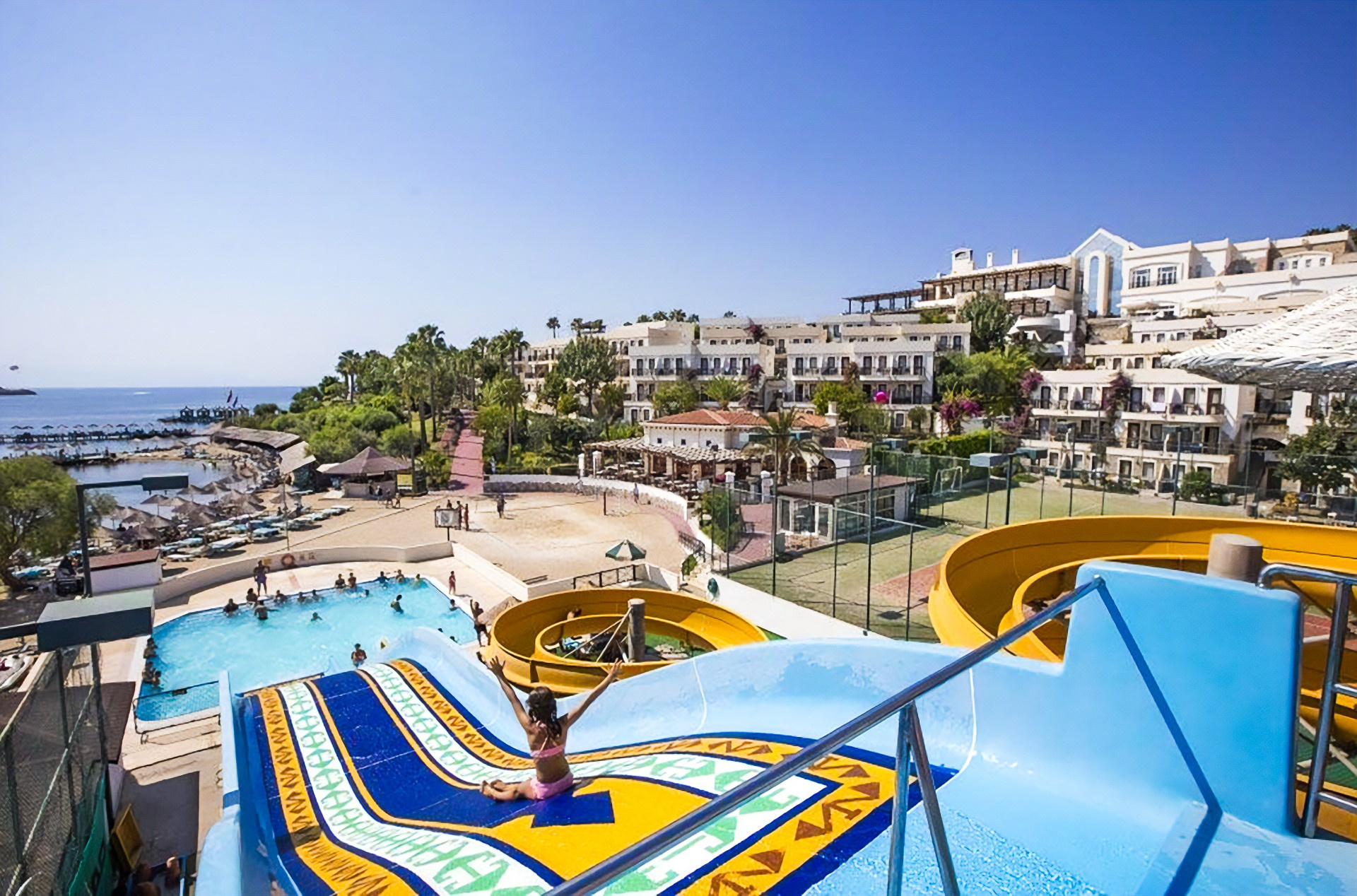 A kedvelt, szépen kialakított, 5 csillagos szálloda Gümbet-öbölben helyezkedik el, közvetlenül a tengerparton. Éttermek, bárok és bevásárlási lehetőségek kb. 1 km-re, Bodrum központja kb. 4 km-re található. Minden korosztály számára ajánljuk.