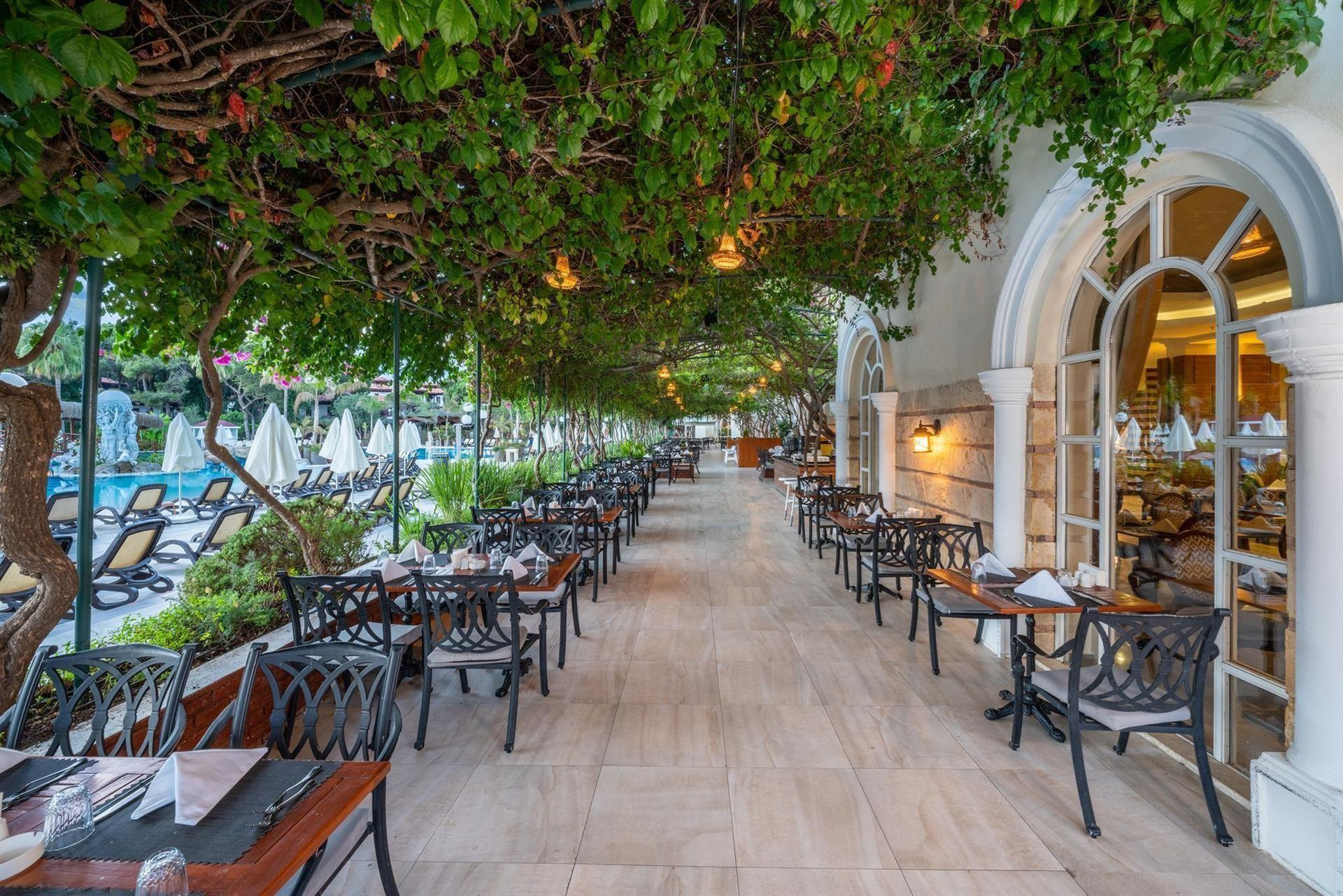 A koncepció magában foglaljaa következőket reggeli, villásreggeli, ebéd és vacsora büfé (a konyhai személyzet által felszolgált ételek), késői vacsora, reggeli a la carte, ebéd a la carte, vacsora és késői snack a la carte, vacsora a la carte, gyümölcsszolgálat a strandon, snackek, szendvicsek, péksütemények és fagylalt bizonyos órákban, friss gyümölcslevek egyes bárokban bizonyos órákban, üdítőitalok Premix automatákból, palackozott sör (Efes, Tuborg, Bomonti) és csapolt sör (Efes Pilsen), palackozott ásványvíz, néhány importált (egyes bárokban) és helyi alkoholos és alkoholmentes italok éjjel-nappal.