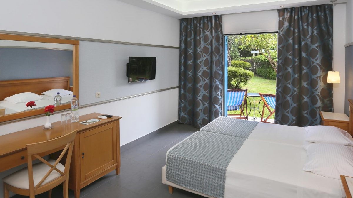 Fekvése: Messonghi településen a tengerparttól csupán 50 méterre helyezkedik el a kiváló minőségű hotel. Több 2 szintes épületből áll, melyek a gondozott, régi olajfákkal tűzdelt kertben szétszórva találhatók meg, egy igazi hangulatos görög minifalut létrehozva. A repülőtér 20 km-re, a település központja pedig kb. 350 méterre található. Közelében hangulatos tavernákat találunk. Szolgáltatások: Kertjében 3 medence (1 családi gyerekrésszel, 1 szórakoztató, 1 csak felnőtt medence), csúszda, minigolf, kosárlabda-, röplabda-, foci- és strandröplabdapálya kapott helyet. A medencék körül a napágyak és ernyők ingyenesen, a tengerparton pedig térítés ellenében vehetők igénybe. Strandtörölköző deposit ellenében kérhető. Napközbeni és esti animációs programokat szervez a hotel, a gyerekeket pedig kölyök klub várja. Ingyenes WIFI a hotel területén. A helyi ételeket és italokat 2 étterem (1 büfé főétterem és 1 a’la carte étterem) és 3 bár (medence bár, blue bár és disco bár kizárólag felnőtteknek) biztosítja. Az edzőterem 16 év felett vehető igénybe és ingyenes. Térítés ellenében a SPA központ is igénybe vehető, ahol szauna, gőzfürdő, változatos masszázsok és kezelések közül válogathatnak. Elhelyezés: 2 ágyas pótágyazható, standard szobáiban, légkondicionáló, síkképernyős sat-tévé, telefon, minibár (érkezéskor 1 üveg víz bekészítéssel, egyéb bekészítés térítés ellenében vehető igénybe), balkon/terasz, hajszárító szolgálja a vendégek kényelmét. Széf térítés ellenében kérhető. 2 felnőtt és 2 gyerek részére egylégteres családi szobák foglalhatók, melyek felszereltségükben megegyeznek a standard szobákkal, de nagyobb alapterületűek. 2 fő normál ágyon 2 fő pedig szófán kerül elhelyezésre. Mozgássérültek részére speciális szoba foglalása előzetes visszaigazolás alapján lehetséges. Ellátás: All inclusive. (Reggeli, ebéd és vacsora büfé rendszerben, az étkezésekhez helyi italokat biztosítanak. Helyi alkoholos és alkoholmentes italok, kávé tea fogyasztása a medence bárban 10:00 és 23:00 között. Napközben snackek, szendvicsek, fagylalt, sütemények, tészták, gyümölcsök a meghatározott időpontokban. Fogyasztás az a’la carte étteremben és a disco bárban helyszíni fizetés ellenében lehetséges.)Egyéb: