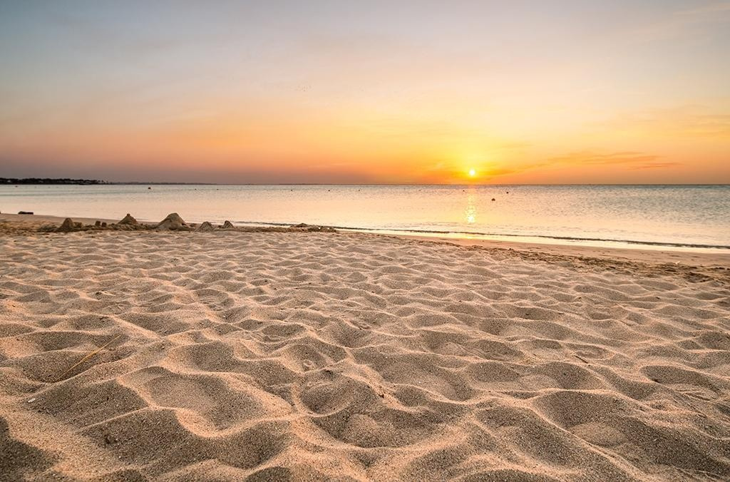 - lassan mélyülő, homokos tengerpart