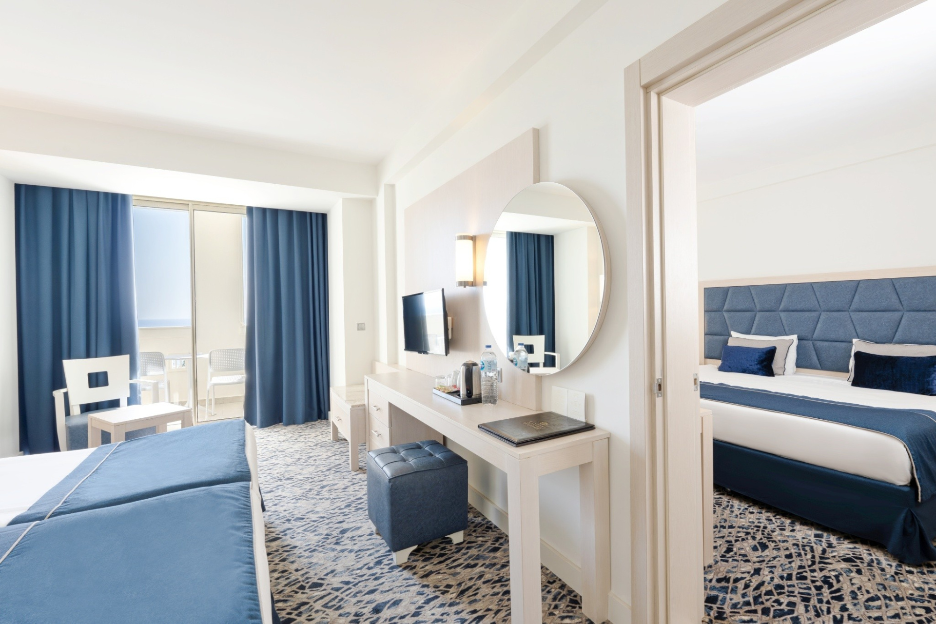 - családi szobák - 2 szoba összekötő ajtóval, a tenger oldalán
