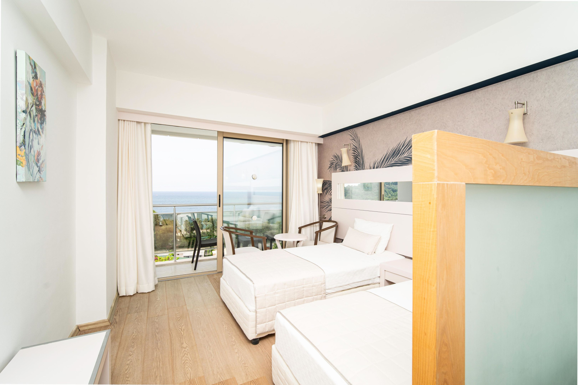 A szobákat légkondicionáló berendezéssel, központi fűtéssel és fürdőszobával szerelték fel. A vendégek a teraszon, illetve az erkélyen is kényelembe helyezhetik magukat. A legtöbb szoba tengerre néző kilátást biztosít. A szőnyegpadlós szobákban franciaágy található. Különálló hálószobák foglalására is lehetőség van. A gyerekeknek kiságyat biztosítanak. Ezen kívül van széf és minbár is. Az alapfelszereltséghez tartozik egy tea-/kávéfőző is. A nyaralás kényelmét szolgálja az internet-hozzáférés, a telefon, a TV-készülék, a rádió és WiFi. A fürdőszobák felszereléséhez zuhanyzó és fürdőkád tartozik. Továbbá rendelkezésre áll egy hajszárító. A gyermekekkel érkezőknek speciálisan kialakított családi szobák állnak rendelkezésre.