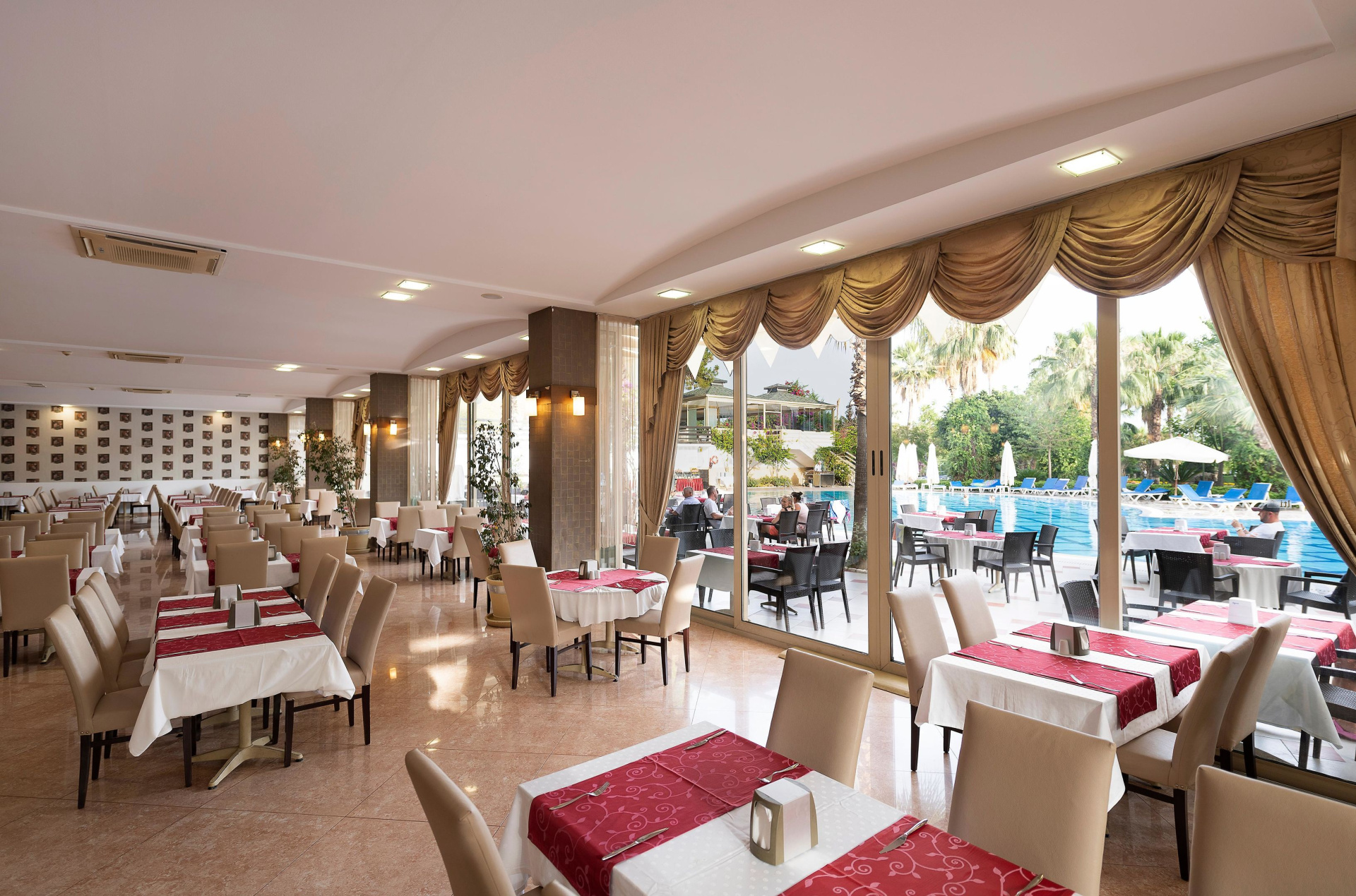 Forró napokon kettő medence - egy benti és egy kinti - gondoskodik a hűsítő élményről. A vízicsúszda kicsiknek és nagyoknak is élményt nyújt. A napozóteraszon ernyőkkel ellátott kényelmes nyugágyak várják a napozni vágyókat. A tökéletes kikapcsolódásról a medencerészlegen található pezsgőfürdő gondoskodik. A medencebár frissítő italokkal várja a vendégeket. A hotelben változatos szabadidős tevékenységeket kínálnak, mint például kerékpározást/ mountain bike-ozást, teniszt, boccia-t, strandröplabdát, röplabdát, kosárlabdát és lovaglást. A vízi sportok kedvelőit vízisíelés, jet-skyzés, vízi biciklizés, banánozás, kenuzás, sznorizás, vízi aerobik és aqua-fitness várja. A vendégeket a szálláshelyen színes beltéri sportkínálat várja, edzőteremmel, asztali tenisszel, darts-cal, gimnasztikával és aerobikkal. A szállás számos wellness szolgáltatással, gyógyfürdővel, szaunával, törökfürdővel, masszázs kezelésekkel és szoláriummal, valamint felár ellenében gőzfürdővel várja a vendégeket. Szórakoztatóprogramok, egy diszkó, egy miniklub és egy éjszakai klub gonoskodik a kikapcsolódásról. Copyright GIATA 2004 - 2026. Multilingual, powered by www.giata.com for client no. 703822