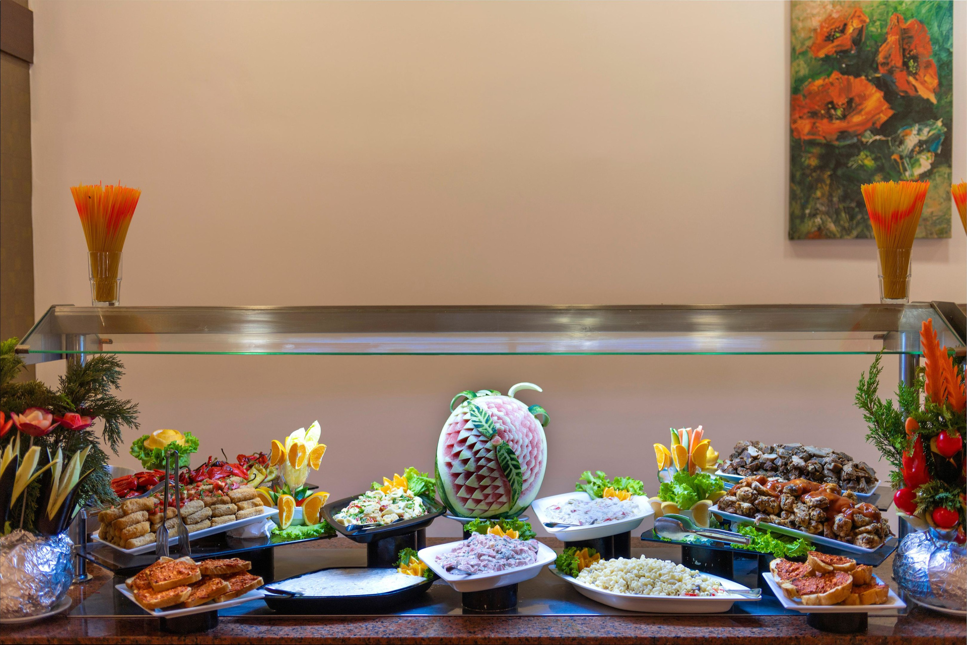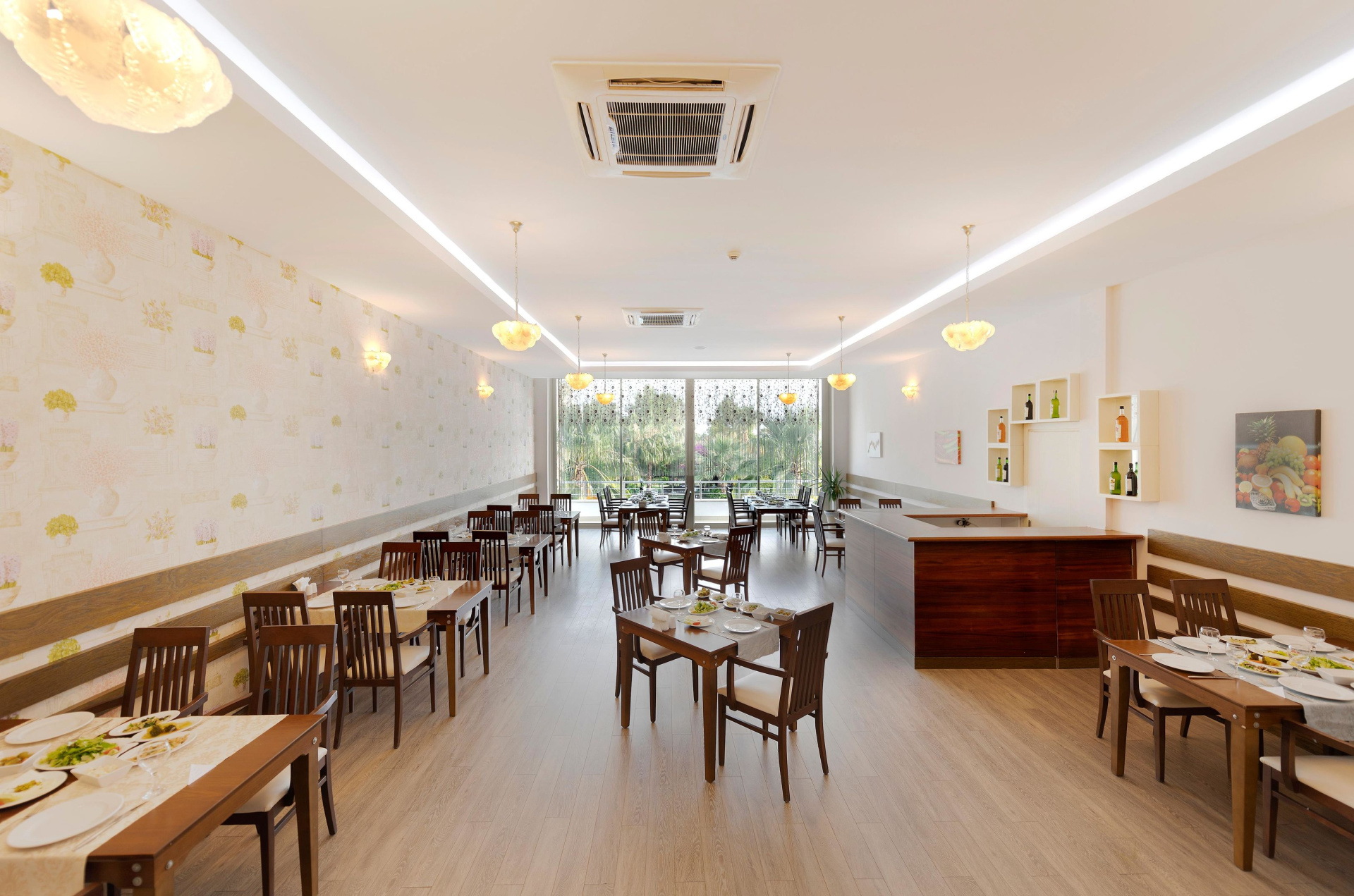 All inclusive ellátás. Reggeli, ebéd és vacsora külön is szerepel a kínálatban. A fő étkezések mellett snackeket is kínálnak. A vendégek italfogyasztása az árban benne foglaltatik. A hotel kínálatában találhatók alkoholmentes italok és alkoholos italok.