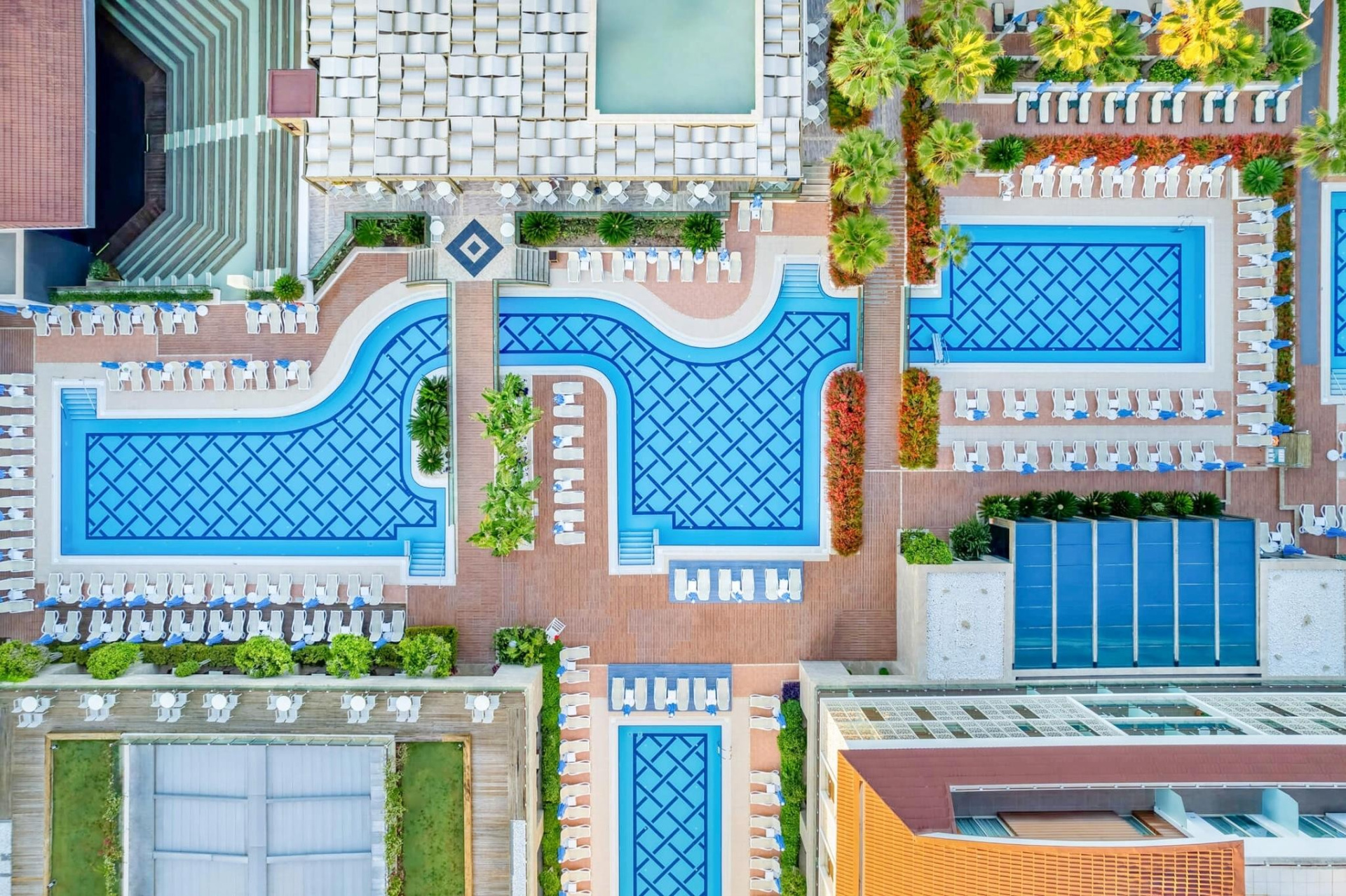 - 4 medence (napágyak, napernyők és törölközők ingyenesen)