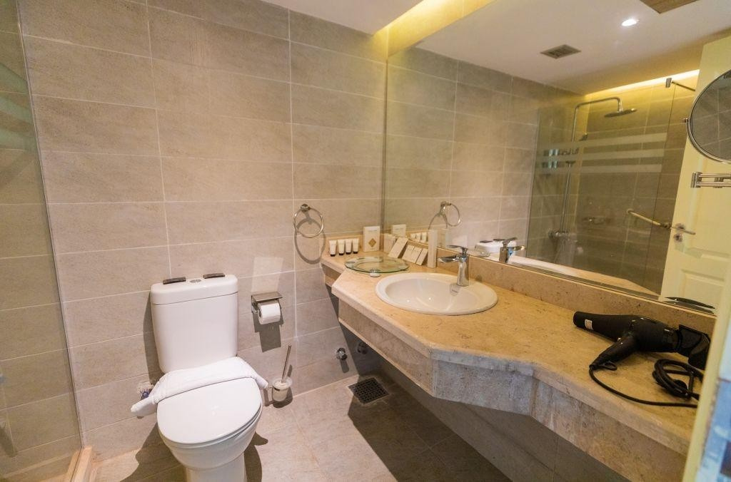 - fürdőszoba (fürdőkád vagy zuhanyozó, hajszárító, WC)