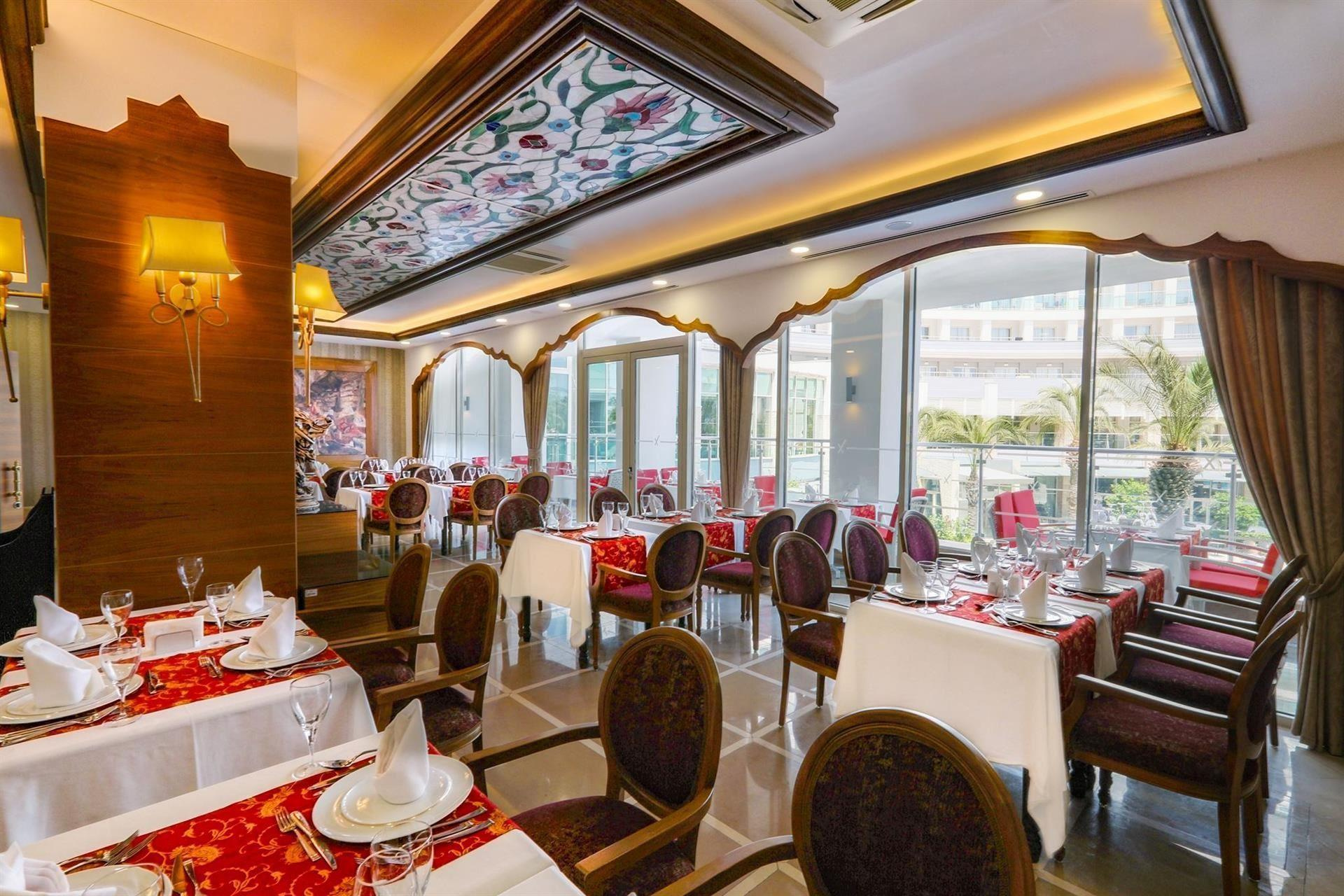 A koncepcióhoz a következők tartoznak reggeli, villásreggeli, ebéd és vacsora - svédasztalos, késői vacsora/mini reggeli (a főétteremben), snackek (hamburger, pizza, főtt kukorica, péksütemények, szendvicsek, grill, tészta), gyümölcs, fagylalt (bizonyos órákban) - a snackbárokban, gözleme, péksütemények, narancslé (reggelire), helyi és néhány importált alkoholos és alkoholmentes ital.