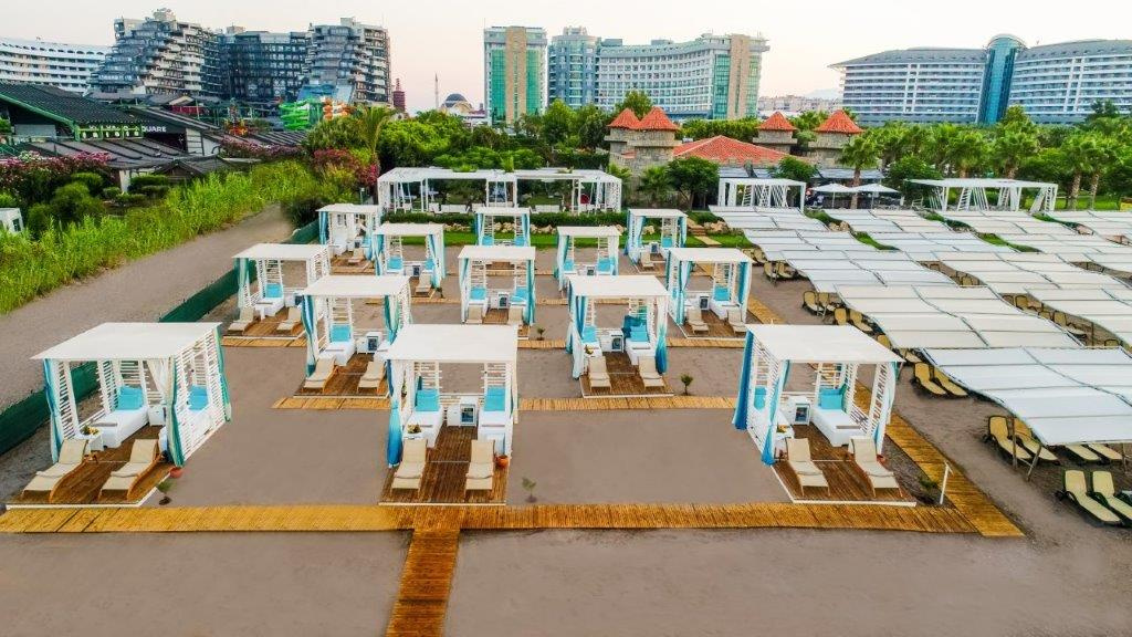 Fekvése: A 2005-ben nyílt, 2019-2020 telén felújított, 9 emeletes, 5 csillagos hotel az antalyai repülőtértől 10 km-re, Antalya központjától 12 km-re található, közvetlenül saját, 160 méter hosszú, Kék Zászló díjjal kitűntetett, homokos tengerpartján. A szállodát körülvevő, zöldellő kertben számos kikapcsolódási és pihenési lehetőséget találunk, különféle sportprogramok, animációs játékok várnak kicsikre és nagyokra. Antalya központjába taxival vagy dolmussal juthatunk be. Szolgáltatások: 4 medence (egyikük télen fűthető) napernyőkkel és napozóágyakkal, 7 felnőtt és 3 gyermekcsúszda, babamedence, belső medence gyermekrésszel, főétterem, 4 a’la carte étterem, 3 snack étterem, 10 bár, nappali és esti animációs programok, alkalmanként élő zene, miniklub (4-12 éves korig), tini klub (13-17 éves korig), játszótér, fitneszterem, törökfürdő, szauna, aerobik, step, zumba, asztalitenisz, darts, boccia, vízitorna, strandröplabda, íjászat, kosárlabda, minifoci, minigolf, teniszpálya felszereléssel, WIFI a szobákban és a hotel közösségi helységeiben. A szálloda saját strandján a napernyők, napozóágyak, matracok és strandtörölközők használata ingyenes. Térítés ellenében: Spa és wellness központ szolgáltatásai, törökfürdő kezelései, masszázs, teniszpálya-világítás, internetkávézó, számítógépes játékok, biliárd, bowling, vízi sportok, mosoda, orvosi ellátás, üzletek, gyermekfelügyelet, privát pavilonok a parton. Elhelyezés: A 499 szoba mindegyike rendelkezik központi légkondicionálóval, hajszárítóval, telefonnal, műholdas LCD okostévével, széffel, WIFI internetkapcsolattal, minibárral, vízforralóval és erkéllyel. A Deluxe szobák 29 nm-esek, max. 3 felnőtt + 1 gyermek elhelyezésére alkalmasak. A Junior családi szobák 35 nm alapterületűek, kéthálósak, melyeket egy tolóajtó választ el. A Családi szobák 40 nm alapterületűek, és két, ajtóval elválasztott hálószobából állnak (egyik szobában franciaágy, a másikban 2 egyszemélyes ágy található). A Családi lakosztályok 57 nm-esek és két, ajtóval elválasztott hálószobából állnak (egyikükben franciaágy, a másikban 2 egyszemélyes ágy található), 2 fürdőszobával felszereltek. A speciálisan nászutaspárok részére kialakított Jakuzzi lakosztályok 46 nm-esek, egylégterűek, a fürdőszobájukban jakuzzival felszereltek, maximum kapacitásuk 2 felnőtt. A „Sky” lakosztályok 59 nm-esek, jakuzzival és napozóterasszal felszereltek, vendégeik részére a szálloda a sztenderdeken felül ingyenesen biztosítja: kapszulás kávéfőző és maxibár a szobában, kérésre reggeli a szobában, saját pincér, szobaszerviz (08:00-23:00 között), privát pavilon a parton. Ellátás: Ultra all inclusive: reggeli, ebéd és vacsora büférendszerben, gyermekbüfé, kései reggeli, frissen facsart narancslé a reggelinél, napközben snack ételek, kávé/tea/sütemények, éjszakai snack (22:00-07:00 között), pide, gözleme és fagylalt bizonyos időpontban, számos helyi és néhány import alkoholos és alkoholmentes ital (08:00-02:00), naponta üdítők, víz és sör a minibárból. Térítés ellenében: bizonyos import italok, prémium és palackozott italok, frissen facsart gyümölcslevek, energiaitalok, 4 a’la carte étterem (török, olasz, mongol és hal; előzetes foglalással, szervizdíj ellenében), szobaszerviz.Egyéb: