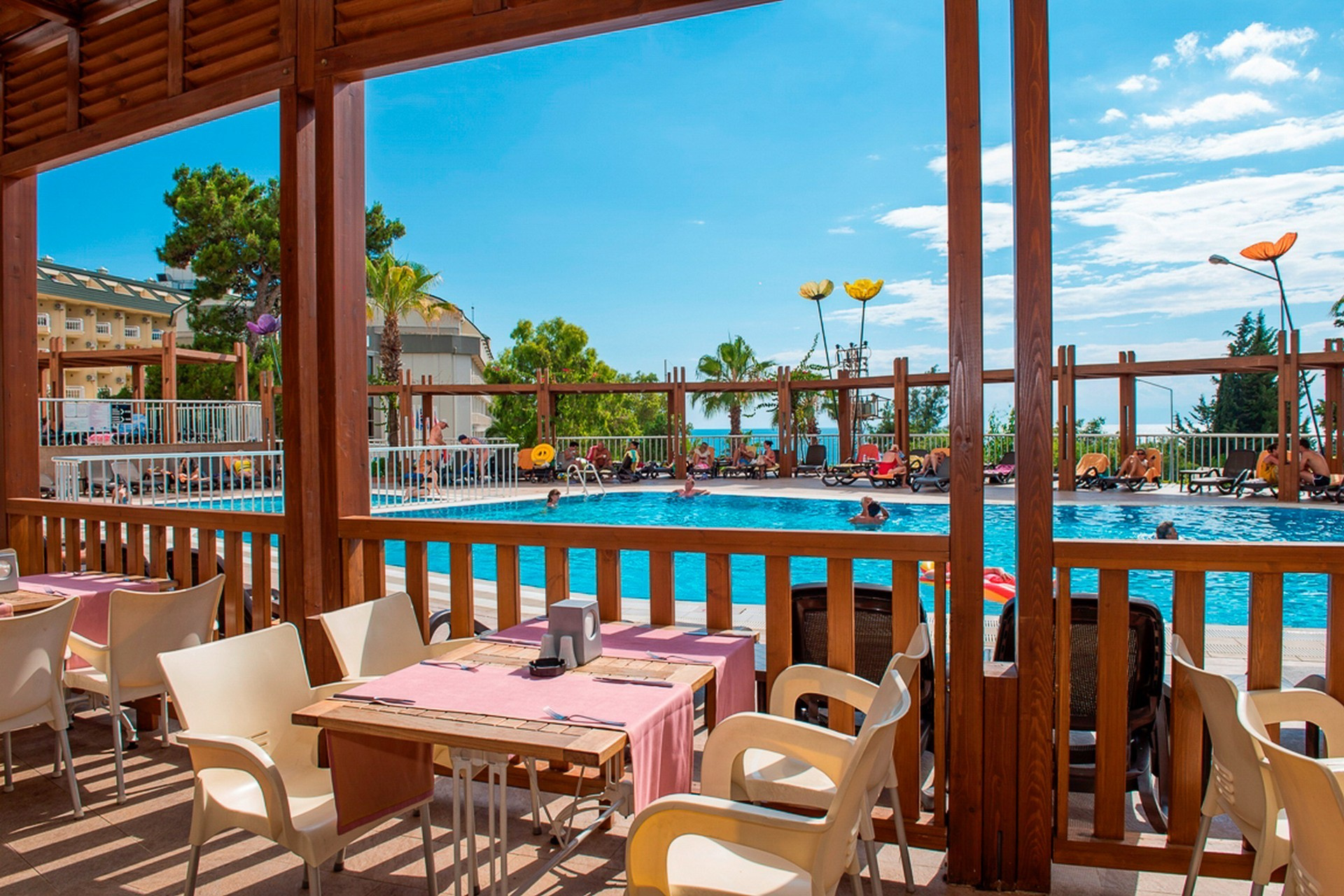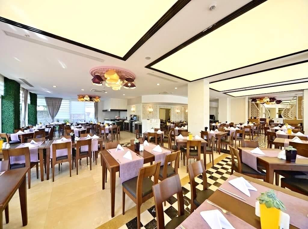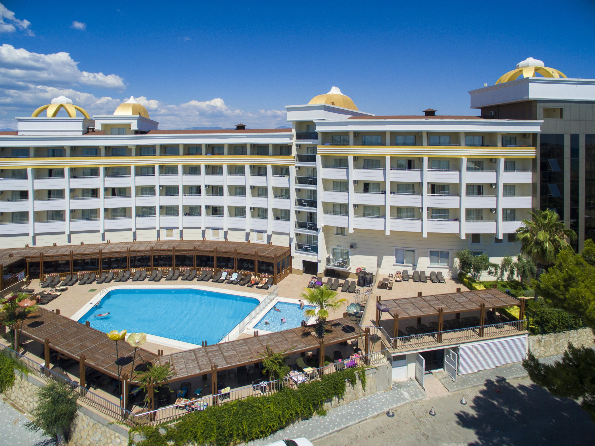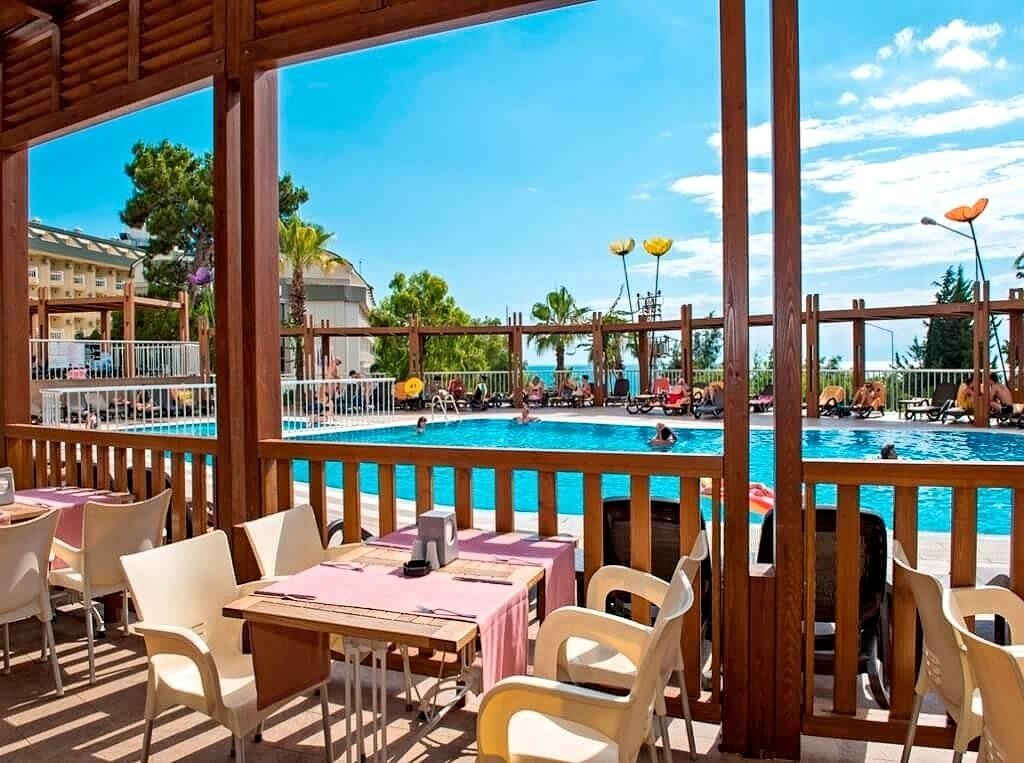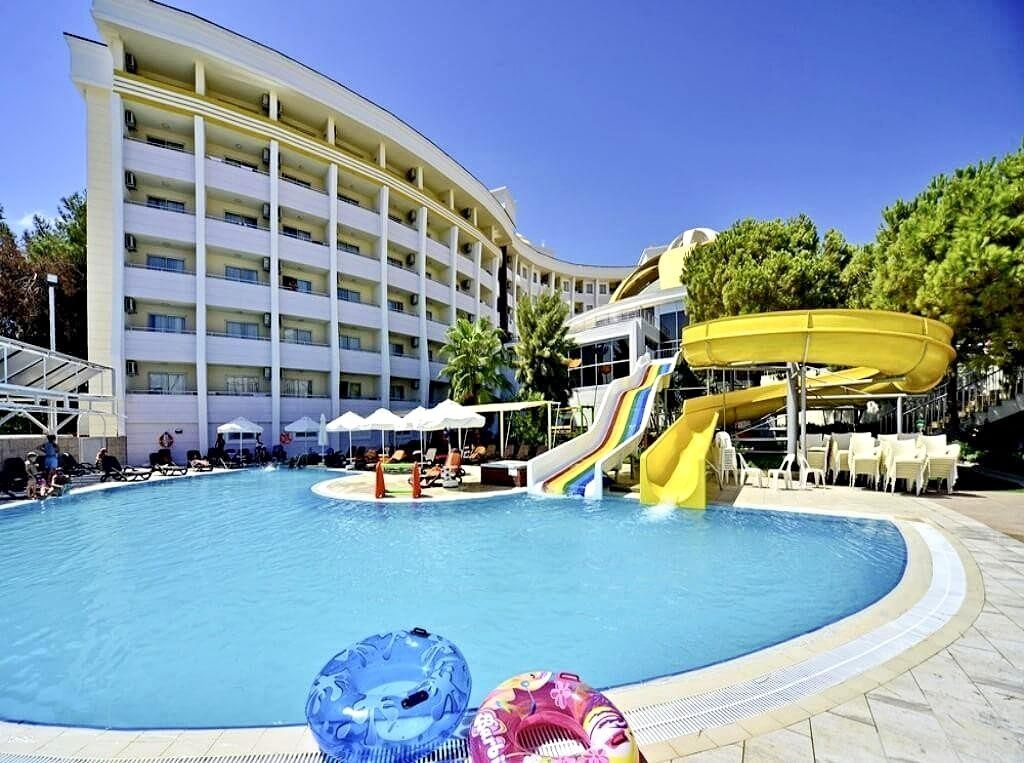 A 6 emeletes főépületből és az út túloldalán elhelyezkedő 2 szintes melléképületekből (nincs lift) álló, Adults Only szálloda Side Kumköyben található, kb. 3 km-re Side óvárosától, ahova helyi buszokkal (dolmuszokkal) is el lehet jutni. Az 5 csillagos, nyugodt helyen fekvő, 2 medencével, vízicsúszdákkal és wellness-központtal rendelkező létesítményben garantált a pihenés. Saját homokos strandja, kb. 200 m-re helyezkedik el, ahova buszjárat közlekedik.