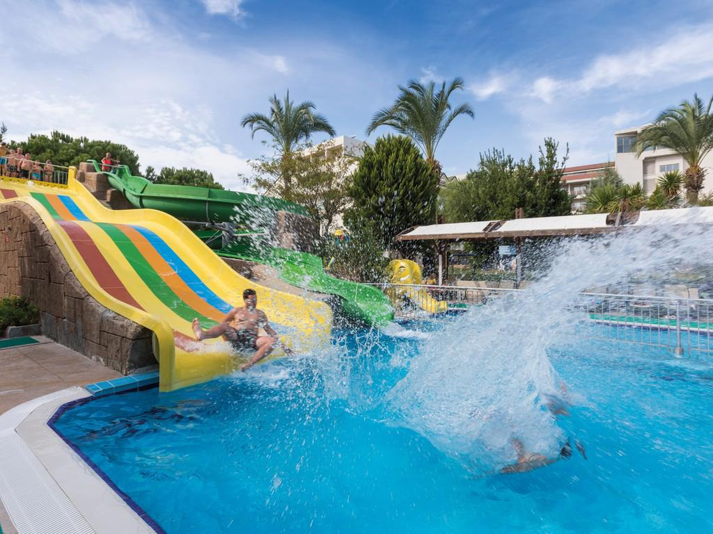 SZOLGÁLTATÁSOK: medence napernyőkkel és napozóágyakkal • beltéri medence • vízicsúszdák • főétterem • bárok (lobby, medence, tengerpart) • animációs programok • esti showműsorok • élőzene • fitneszterem • strandröplabda • törökfürdő • szauna • wifi