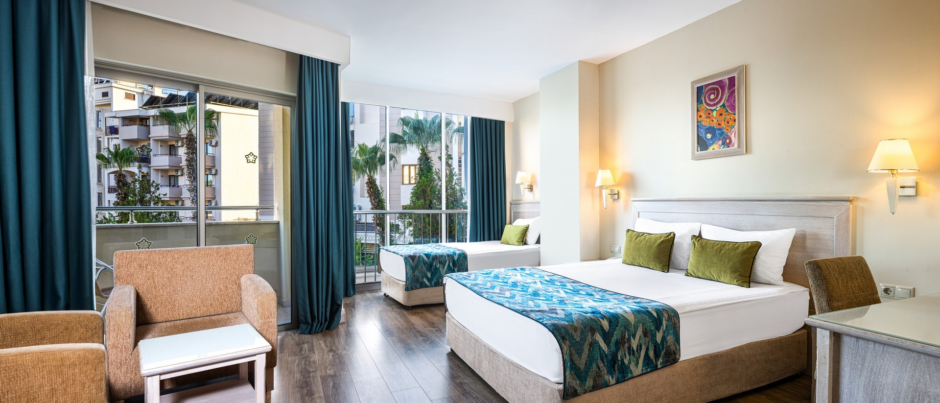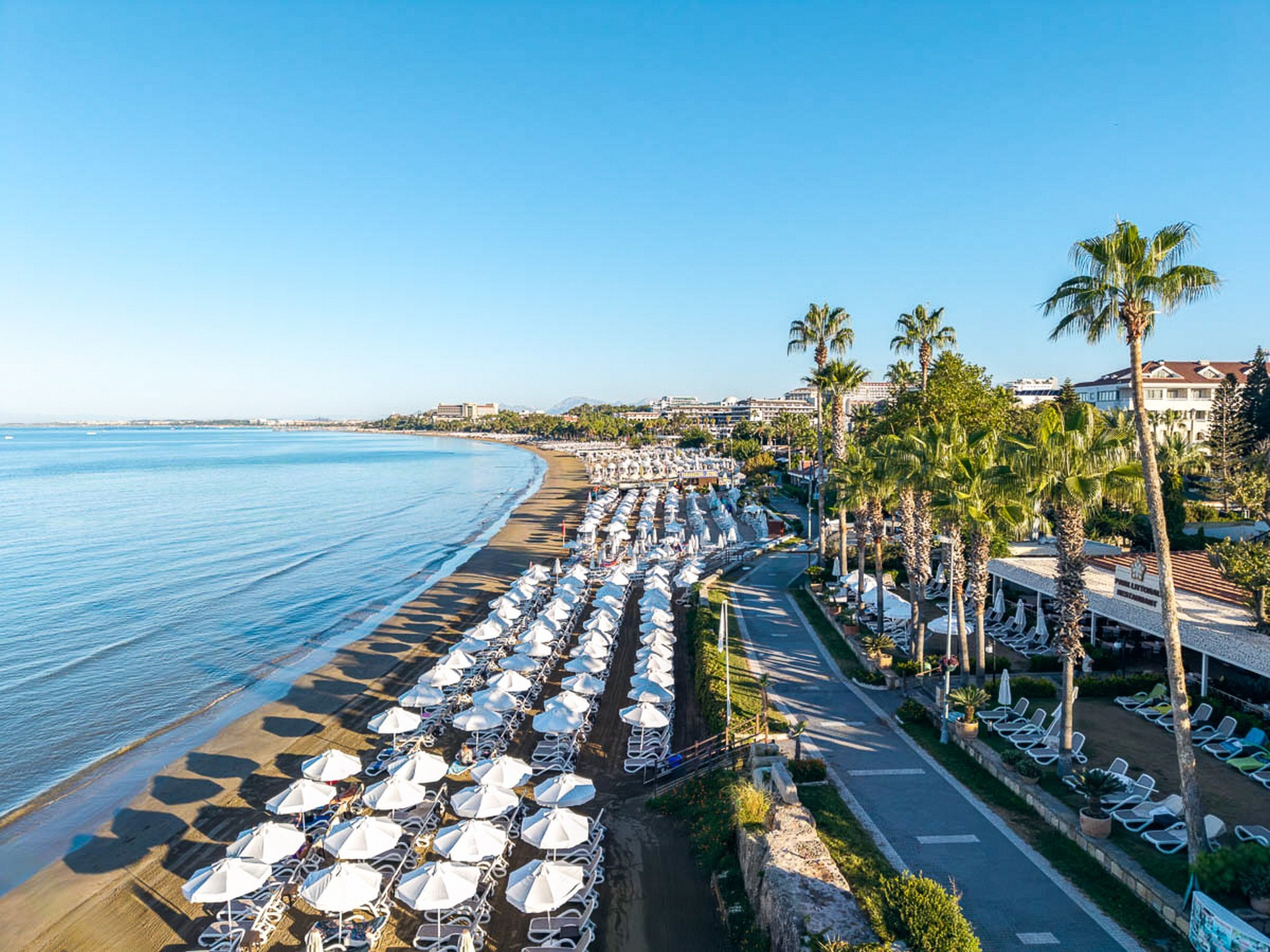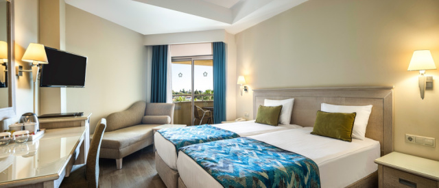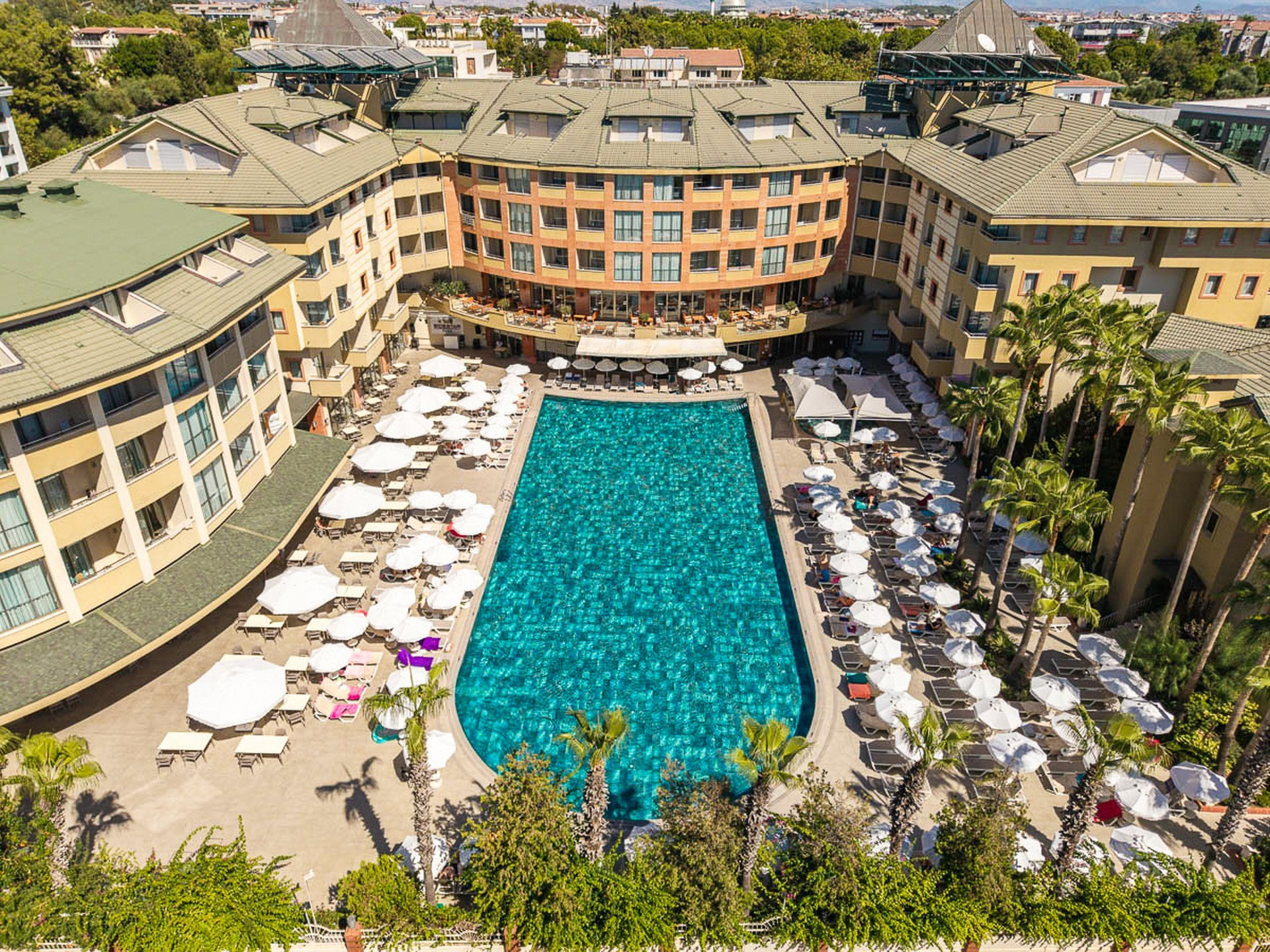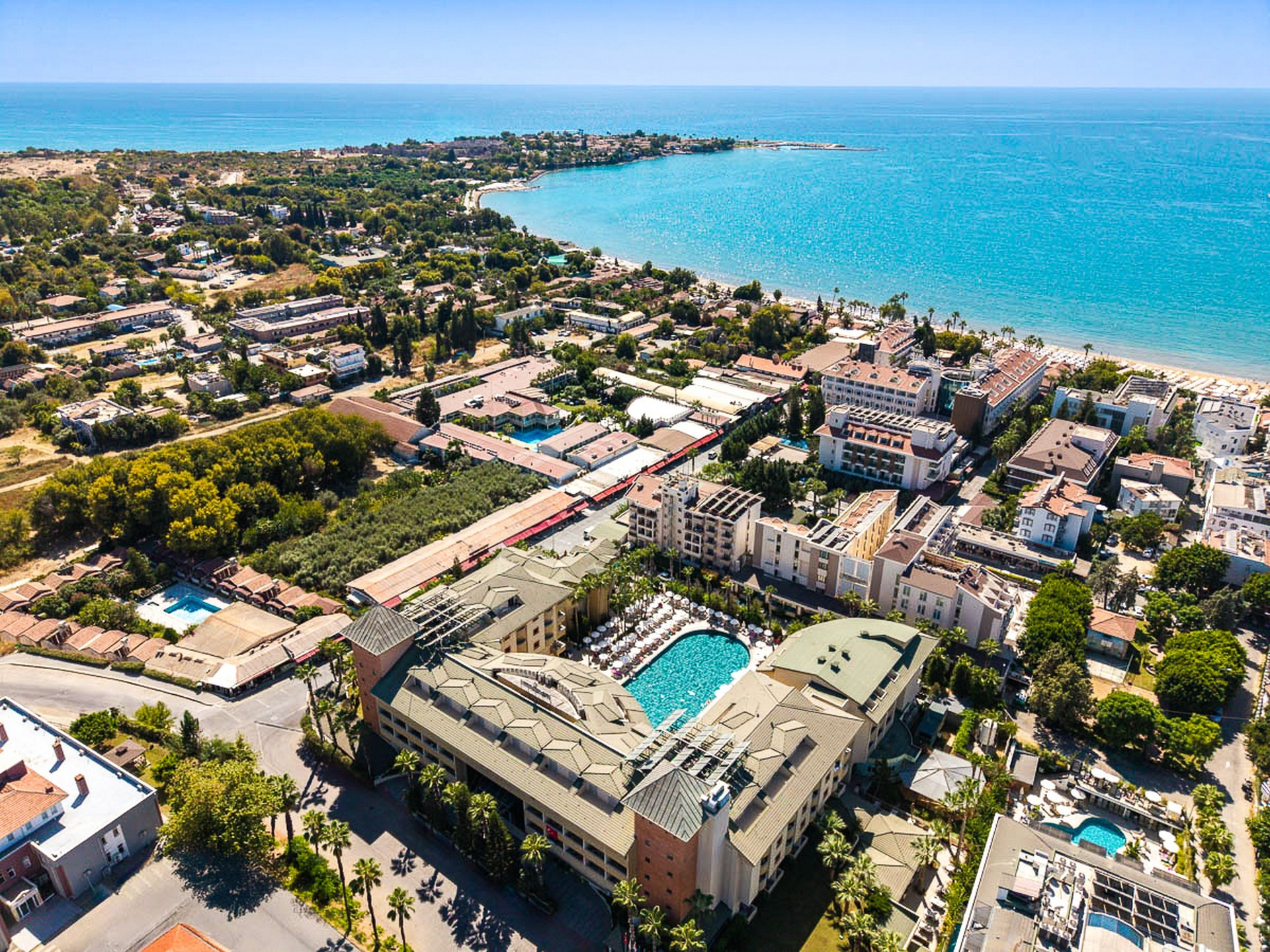 A szépen berendezett szállod a Kék Zászló díjjal kitüntetett, homokos strandtól kb. 150 m-re fekszik. Side történelmi központja egy rövid sétával érhető el. Több medencével, vízicsúszdákkal minőségi gasztronómiai ajánlatokkal és változatos animációs programokkal várják a vendégeket. Minden korosztály számára ajánljuk.