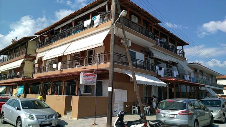 Az apartmanház Sarti új részén (Village) fekszik a tengerparti sétányon, Sarti ófalujának központjától kb 400 méterre található.