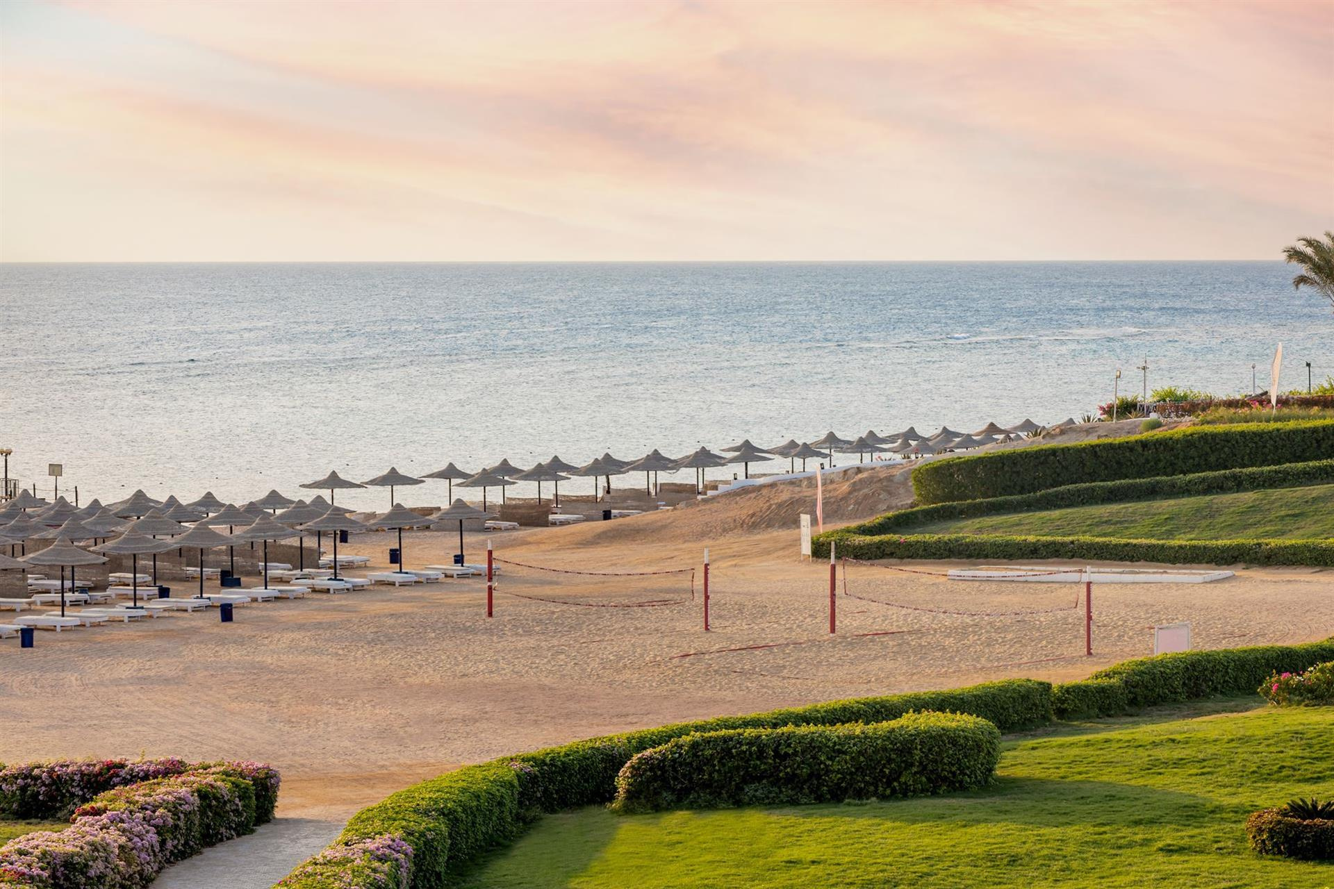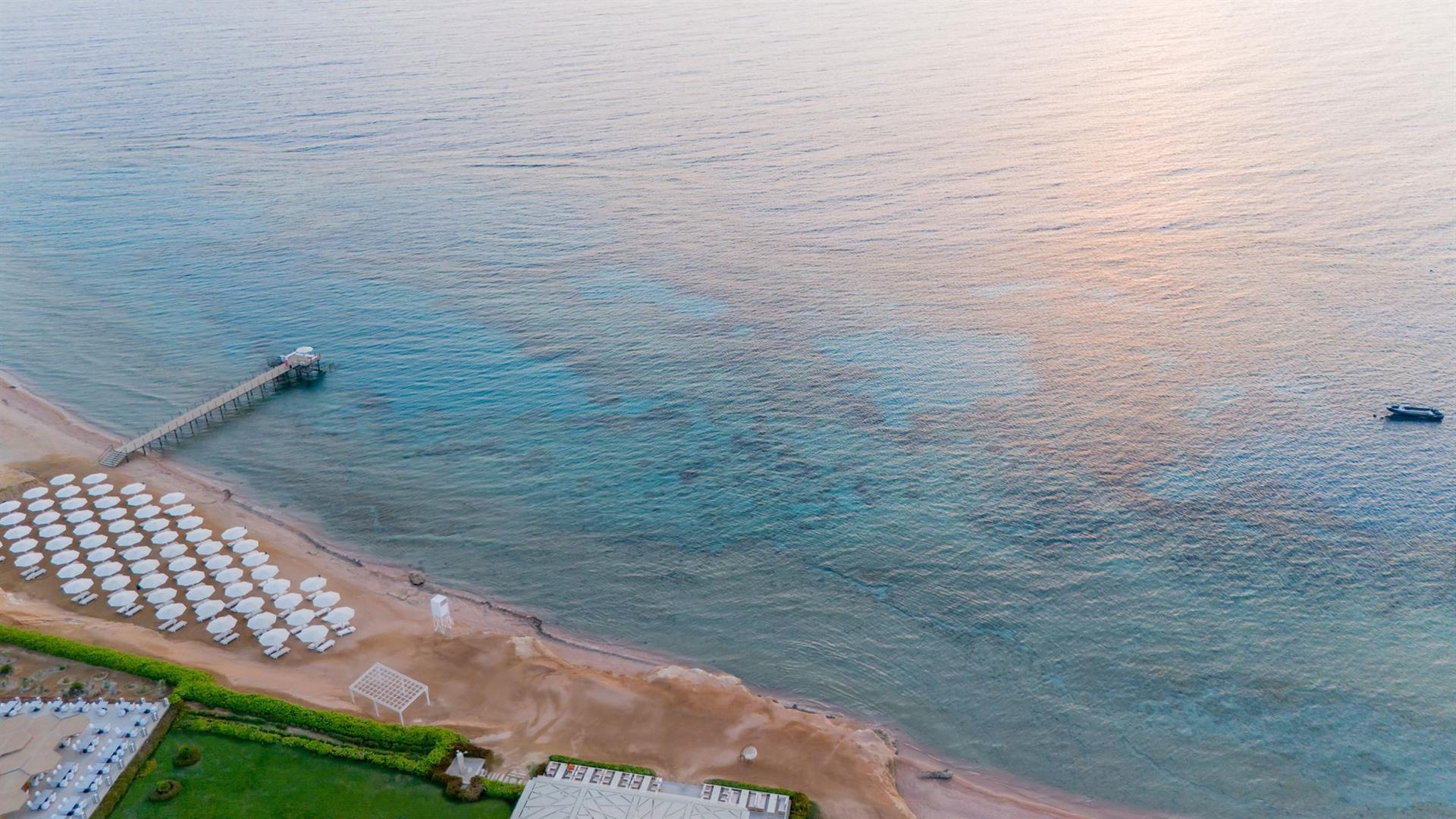 Privát homokos strand korallzátonnyal, külön, csak felnőtteknek fenntartott résztel.