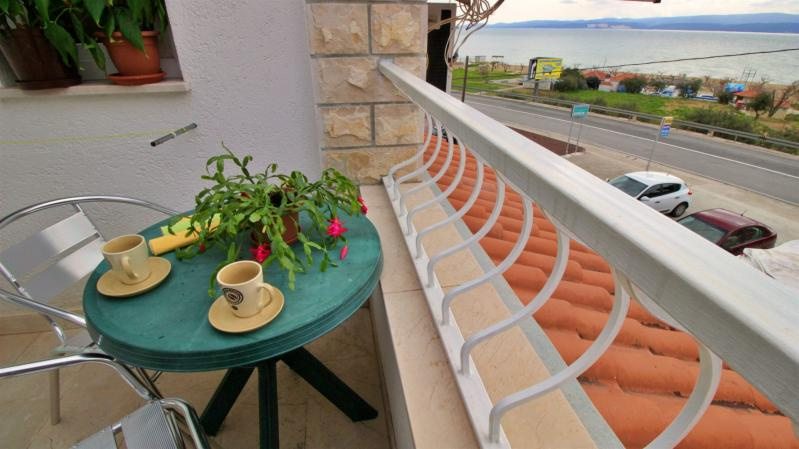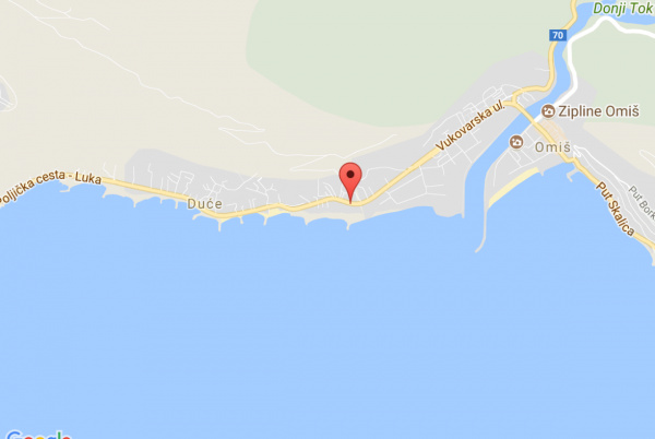 Fekvése: Omis és Duce határán, óvárostól 1200 m-re, a lassan mélyülő, homokos strandtól 50 m-re, a tengerparti út fölött található az apartmanház.