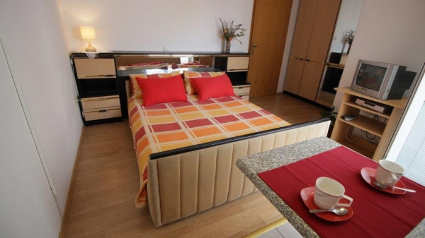 S2 ágyas: stúdió, 18 nm /1 db, tetőtéri (nappali franciaággyal, konyhasarok, TV, klíma,fürdőszoba, erkély).
