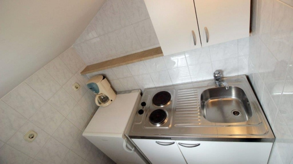 SM2 ágyas: stúdió, 20 nm /1 db, tetőtéri (nappali franciaággyal, konyhasarok, TV, klíma, fürdőszoba, tengerre néző erkély).