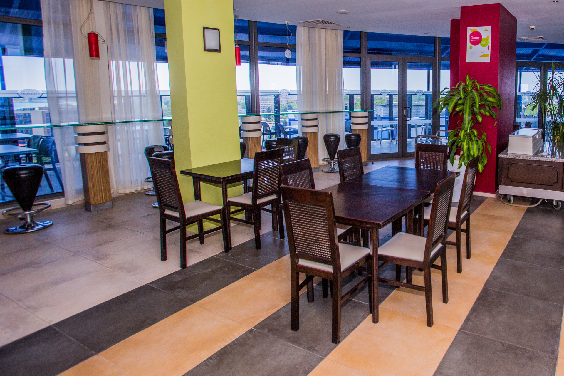A Meridian Hotel Napospart déli részén található, kb. 300 méterre a tengerparttól és kb. 900 méterre az üdülőhely központjátó és kb. 28 km-re a burgaszi repülőtértől.