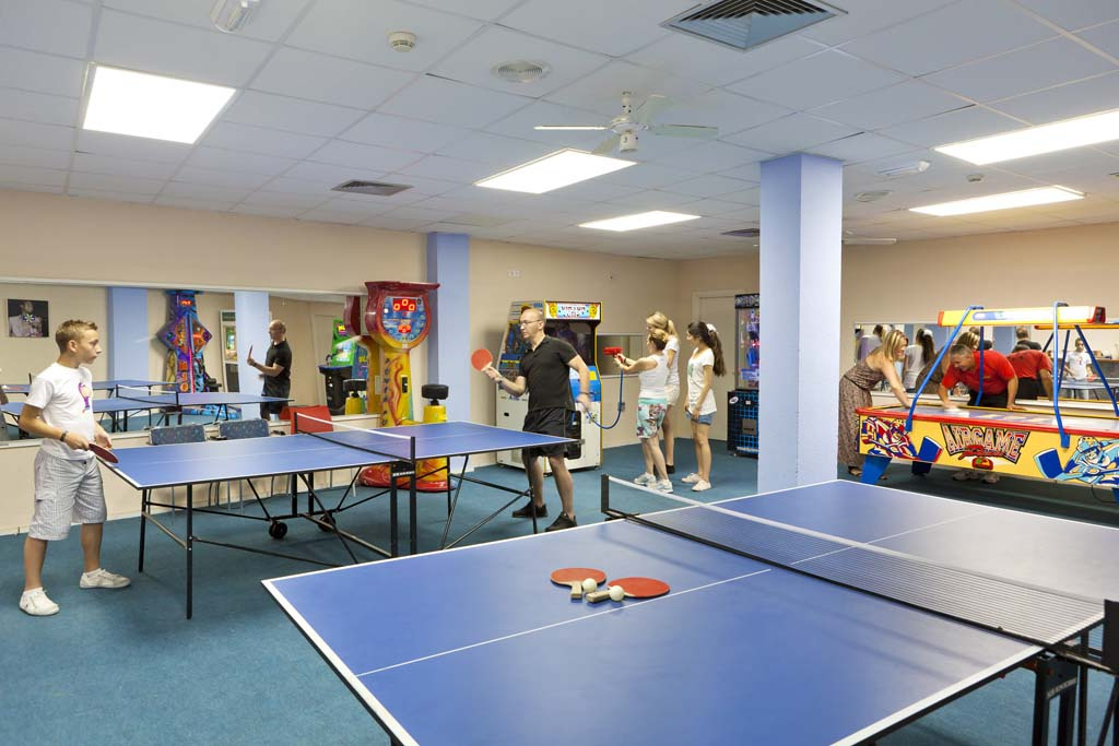 • esti szórakozási lehetőségek, • gyerekklub, • szórakoztatás, • asztalitenisz, • biliárd, • játszótér, • játékterem, Flintstone kalandpark a hotelben és falmászás, főzés, maszk készítés különböző foglalkoztató programok a gyermekeknek mindennap, mini disco és mini club. Továbbá esti show műsorok és programok felnőtteknek és gyermekeknek, élőzene, gyermekjátszótér, konditerem, spinning, latin táncoktatás, aqua gym.