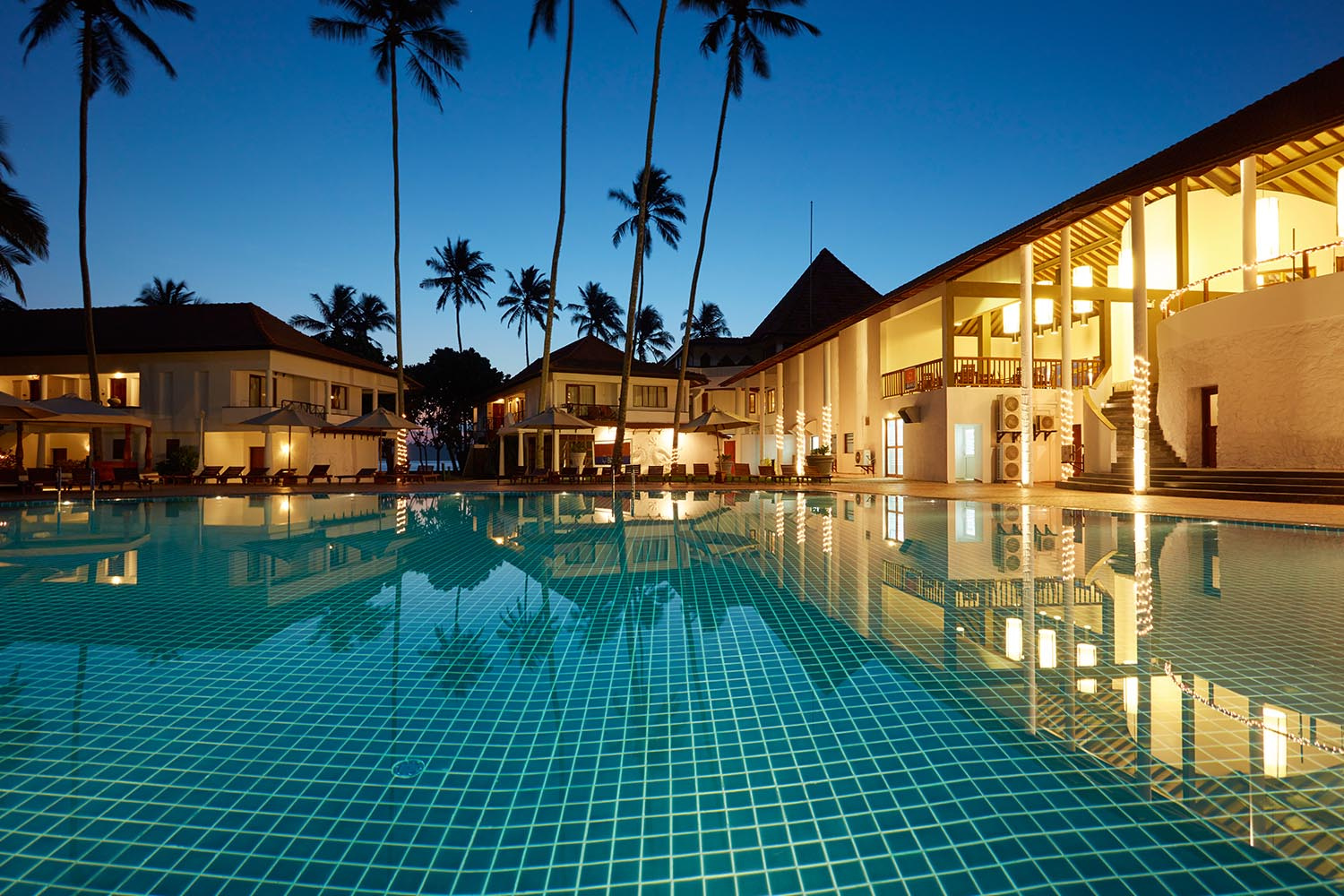 A közvetlen tengerparti elhelyezkedésű hotelkomplexum Srí Lanka déli részén terül el.
