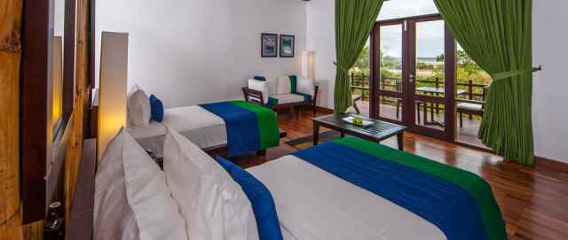 Szobák (lagoon cabin): Kétszintes épületben, négyesével helyezkednek el a terasz/balkon a lagúnára vagy a kertre néz. Felszereltségükhöz tartozik a TV, minibár (térítés ell.), tea/kávéfőző, DVD lejátszó, széf, fürdőszoba zuhanyzóval, hajszárító, wifi