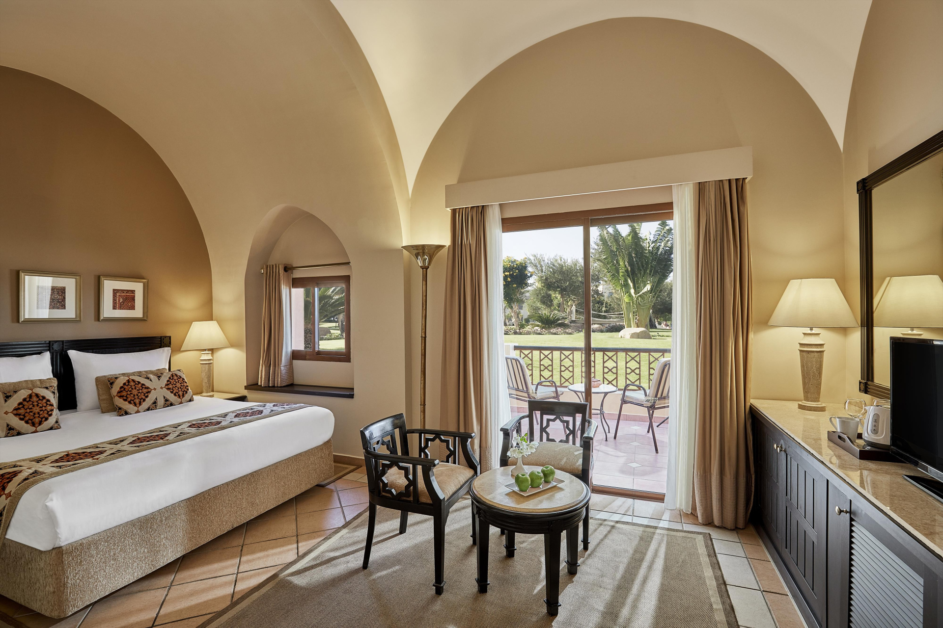 A jellegzetes keleti stílusban épült, gyönyörű kertben fekvő nagy, Adults Only szállodakomplexum közvetlenül a Coraya-öböl gyönyörű homokos strandján található, és a Madinat Coraya szállodakomplexum része. A kristálytiszta tenger és a gazdag víz alatti élővilág kitűnő helyszín a búvárkodás és a sznorkelezés szerelmeseinek.