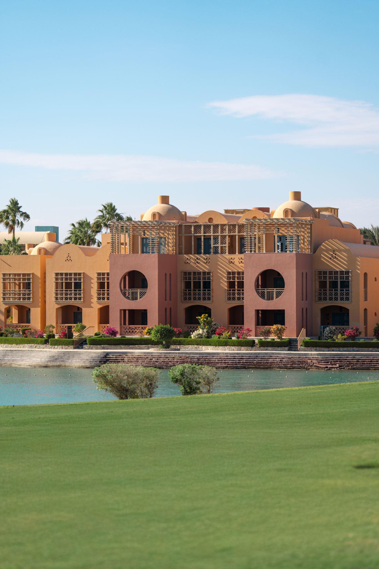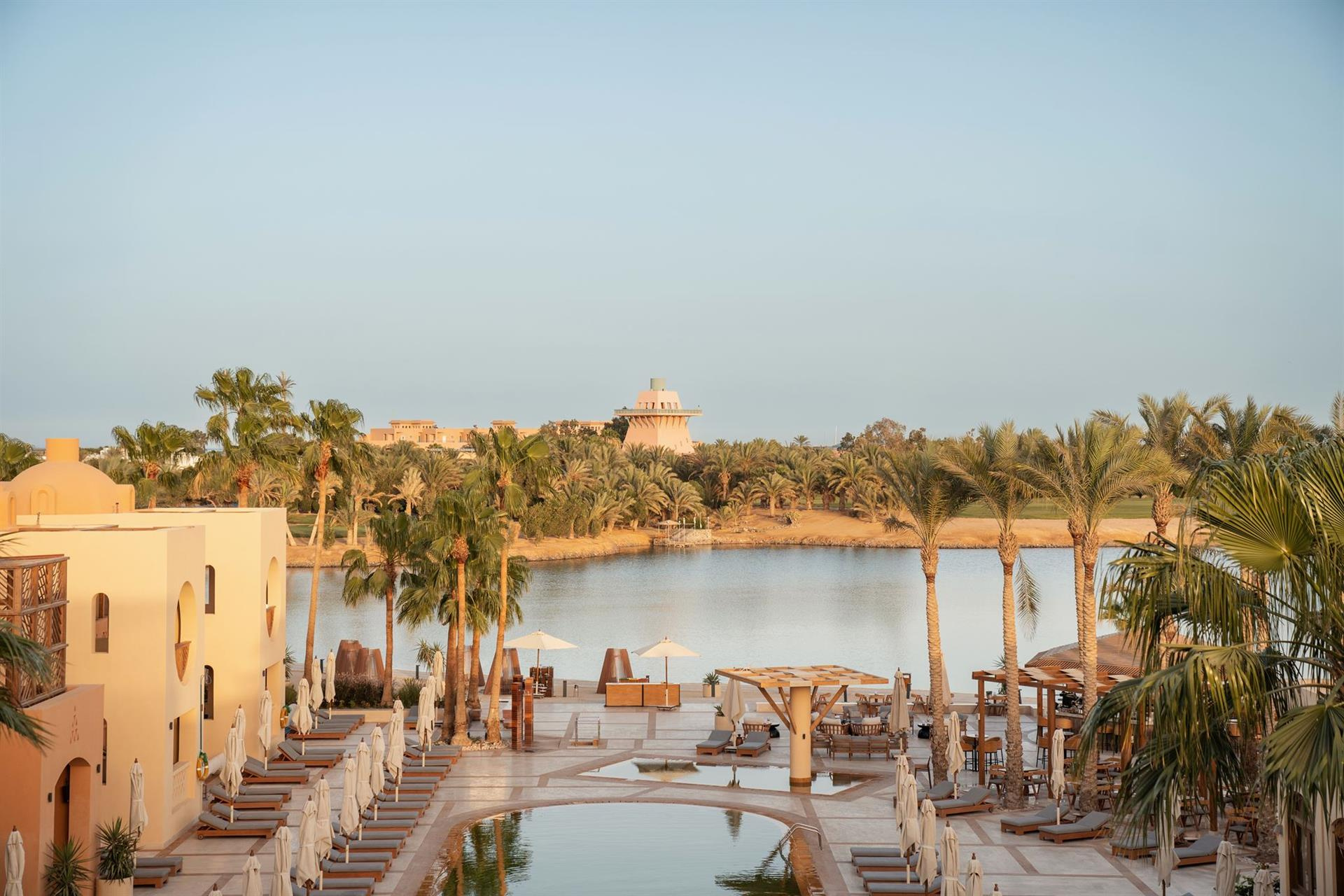 A szálloda El Gouna város központjában, a golfpálya mellett, közvetlenül a tengerparton található.