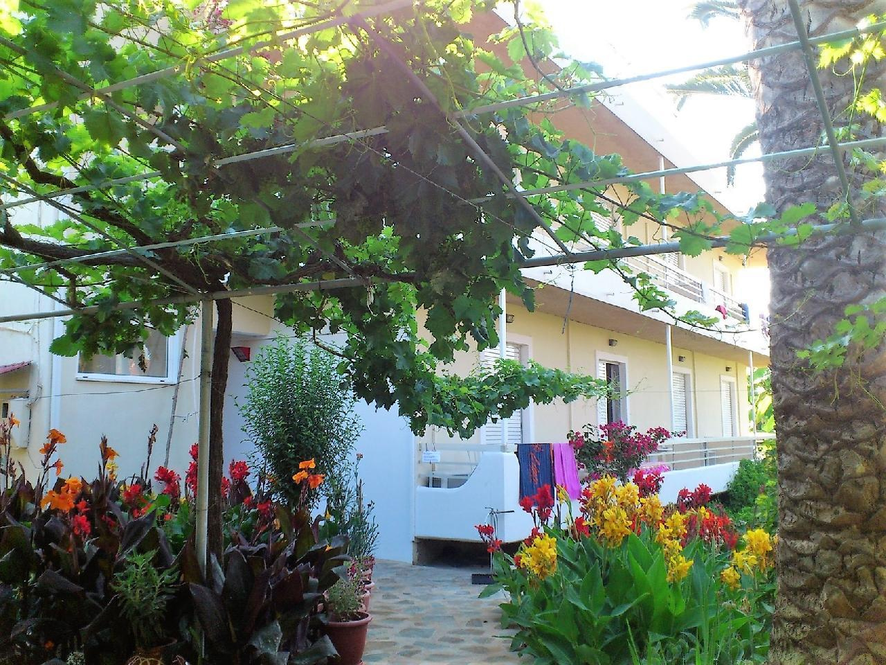 Az apartmanház Laganas csendes részén található, 50 méterre a homokos tengerparttól. A közelben számos étterem, bár, üzlet, Laganas központja kb. 5 perces sétával elérhető. A ház különlegessége az óriási, közös, tetőtéri terasz, ahonnan csodálatos kilátás nyílik a Jón-tengerre.