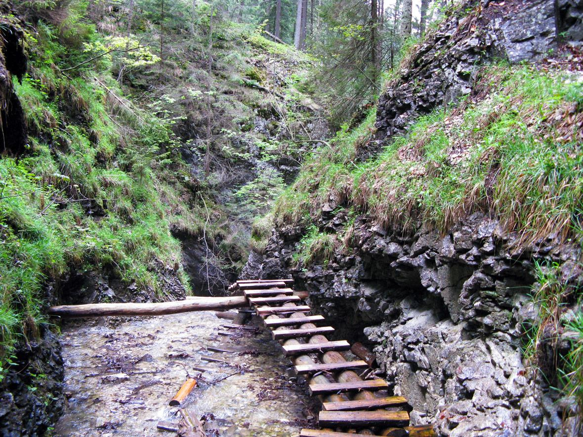 Suchá Belá szurdok az egyik legérdekesebb a hegységben hiszen itt a karszthegységeket jellemző összes képződmény fellelhető. Az itt folyó patak helyenként a felszín alatt folyik, aztán egyszer csak ismét előbukkan. Útközben vízesésekkel is találkozunk, majd azokat elhagyva elérkezünk a szurdok legszűkebb részéhez. Itt a sziklák között mindössze egy méter szélességű az átjáró. Ezután máris elérkezünk a következő fantasztikus látványhoz: a csaknem 13 méter magas Ablakos-vízesés alá. Tovább haladva számos szűk átjáróval, vízeséssel találkozunk. Haladásunk a sziklafalba erősített láncok, vagy dróttálcák segítik. Ez a szakasz csakis teljes szédülésmentességgel, valamint a technikai segédeszközök megfelelő használatával hajtható végre.