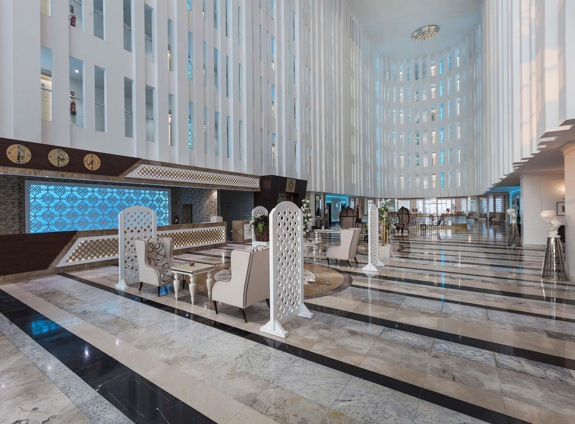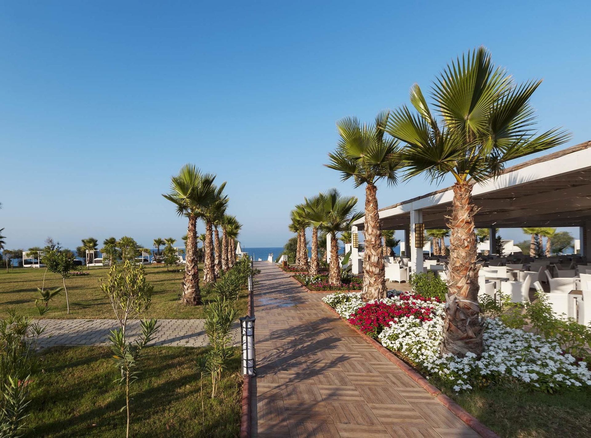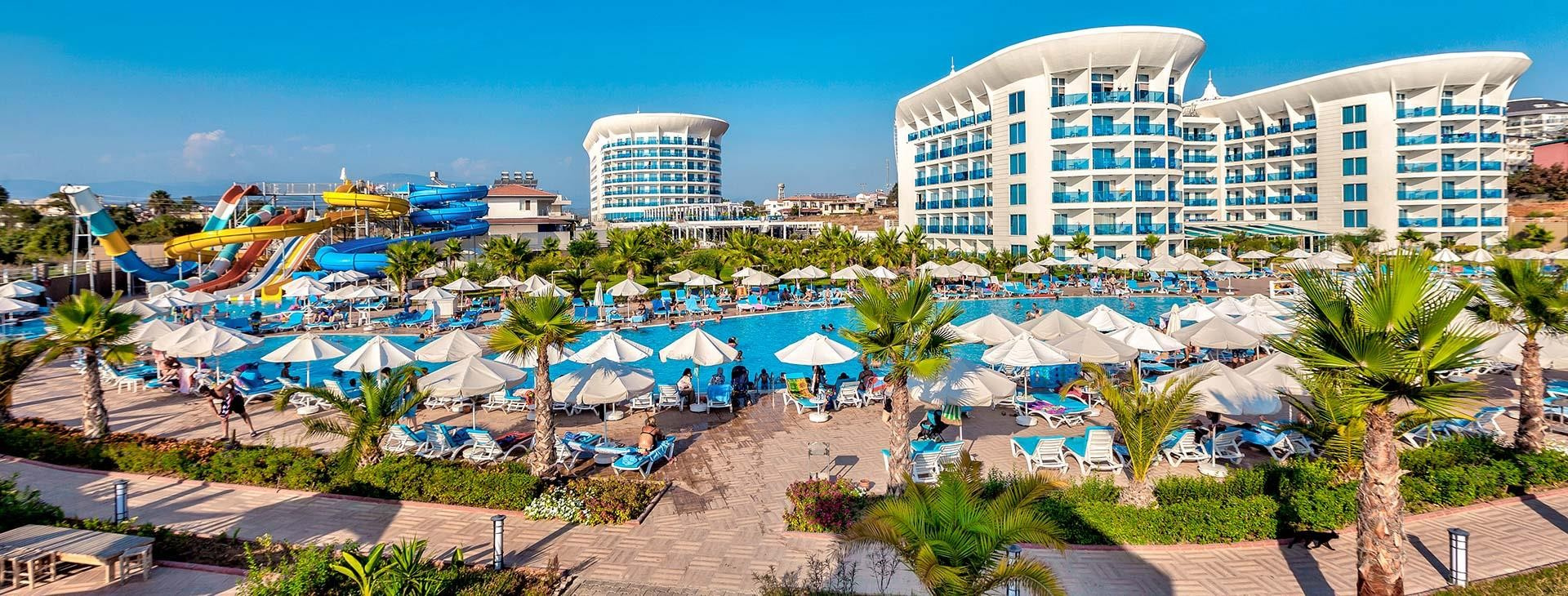 A közvetlenül a saját homokos/kavicsos strandján fekvő szállodában aquapark, spa-részleg és több a'la carte-étterem is várja a vendégeket. A városközpont kb. 850 m-re, Side központja kb. 20 km-re fekszik. Minden korosztály számára ajánljuk.