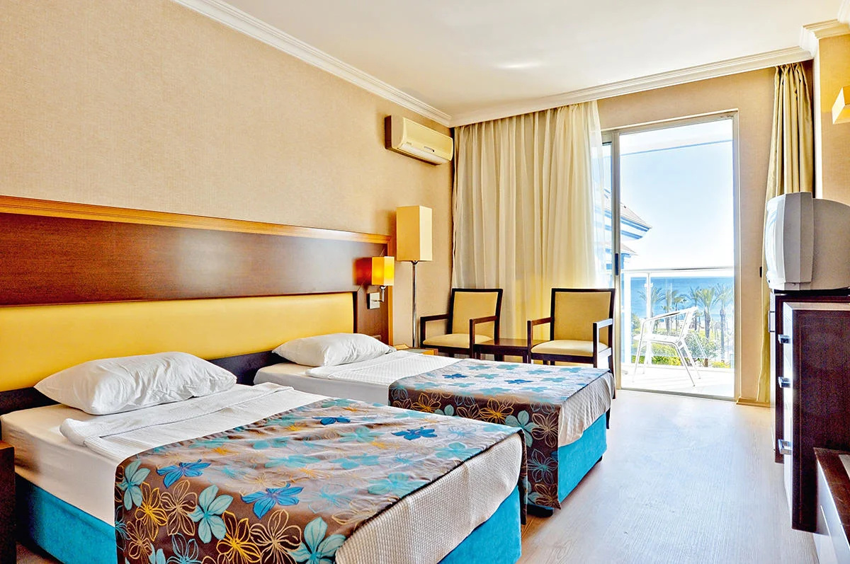 A szálloda három épületből áll, 4 lifttel, 215 szobával, 504 ággyal, 156 standard szobával, 12 családi szobával, 20 háromágyas szobával, 7 lakosztállyal és 18 sarokszobával rendelkezik. Minden szobában fürdőkád, WC, telefon, műholdas TV, légkondicionáló (meleg és hideg), minibár, széf, hajszárító és erkély található. A szobák és a padlózat kiváló minőségű szőnyegekkel és laminált padlóval van burkolva.Szobák a C épületben.
