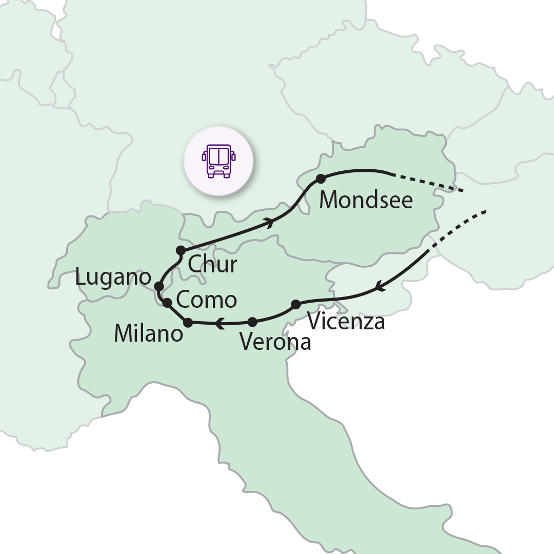 ">Veronában, Rómeó és Júlia városában. Természetesen megtekintjük a két szerelmes híres erkélyét. A ház falai telis-tele vannak rajzolva a szerelmesek üzeneteivel. A főtéren látható az ókori Aréna, mely nyaranta a híres Veronai Ünnepi Játékok helyszíne. Ez Olaszország leglátogatottabb szabadtéri színháza. A bájos belvárosban sétálva keressük fel az Erbe teret és a Scaligeri család palotáit. Kisétálunk a várost körbeölelő kanyargós Adige folyó partjára is. Veronát elhagyva Milánóba utazunk. Meglátogatjuk a város főbb látványosságait. Ezek közül a legismertebb a Dóm, mely az 1300-as évek végén épült, 135 csipkézett tornyocskával és 3.400 szoborral díszített. Véleményünk szerint kihagyhatatlan élmény felmenni a toronyba és Milánót a Dóm márványteraszáról is megtekinteni. Ha felérünk, nem csak a panorámában gyönyörködhetünk, hanem a minket körülvevő csipkézett márvány tornyocskák és pillérek látványában is. Aki be szeretne menni a Dómba és fel akar menni a kupolába (lifttel), azoknak irodánk előre megvásárolja a jegyet, hogy elkerüljék a nagyon hosszú sorbanállást. (Ezt jelentkezéskor kell megrendelni.)