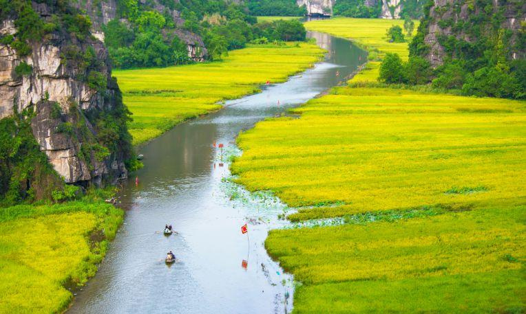 Reggeli után elutazunk Ninh Binh-be, ahol látogatást teszünk Hoa Lu városába, amely a 11. században Vietnam ősi fővárosa volt. Itt megtekintjük Dinh és Le király templomát, és megcsodáljuk az ősi idők különleges építészeti stílusát, amely hűen őrzi a múlt emlékeit. Ezt követően hagyományos sampan csónakba szállunk, hogy felfedezzük Tam Coc lenyűgöző vidékét – neve szó szerint „három barlangot” jelent. A tájat gyakran nevezik