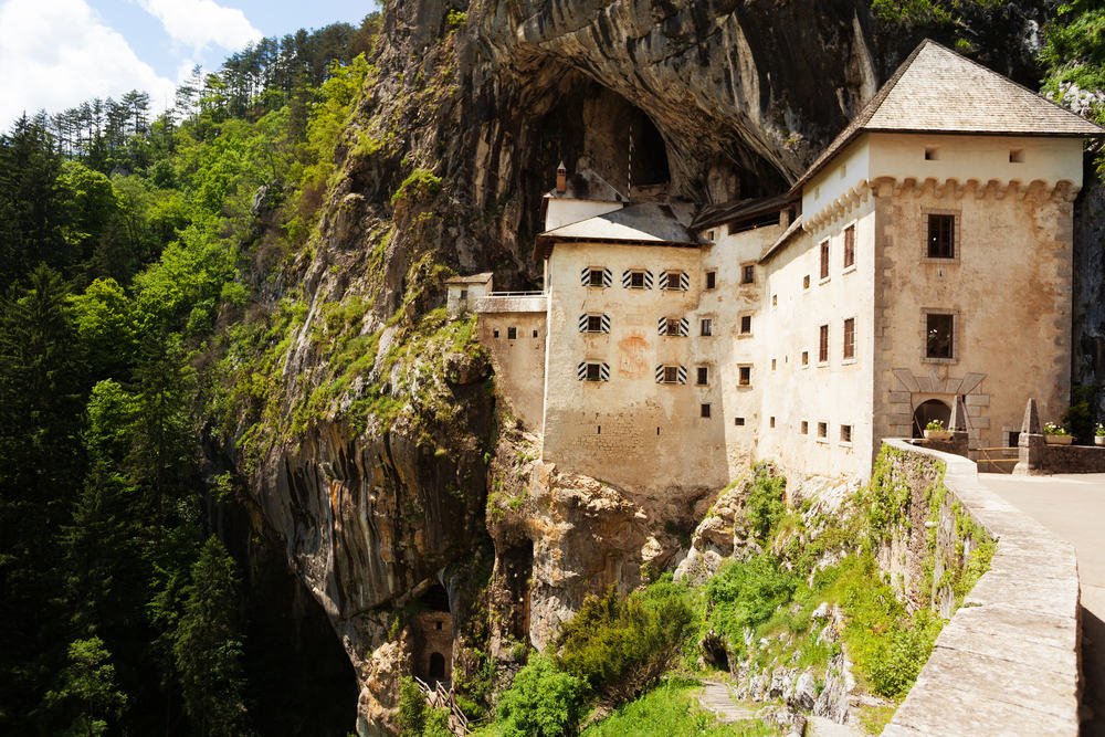 A Predjama kastély. A mellette levő település, Postojna elsősorban a barlangjáról híres, de a várostól csupán 10 km-re található a csodaszép kastély. A Predjama várkastély egy 123 m magas mészkősziklába épült egy barlang bejáratához.